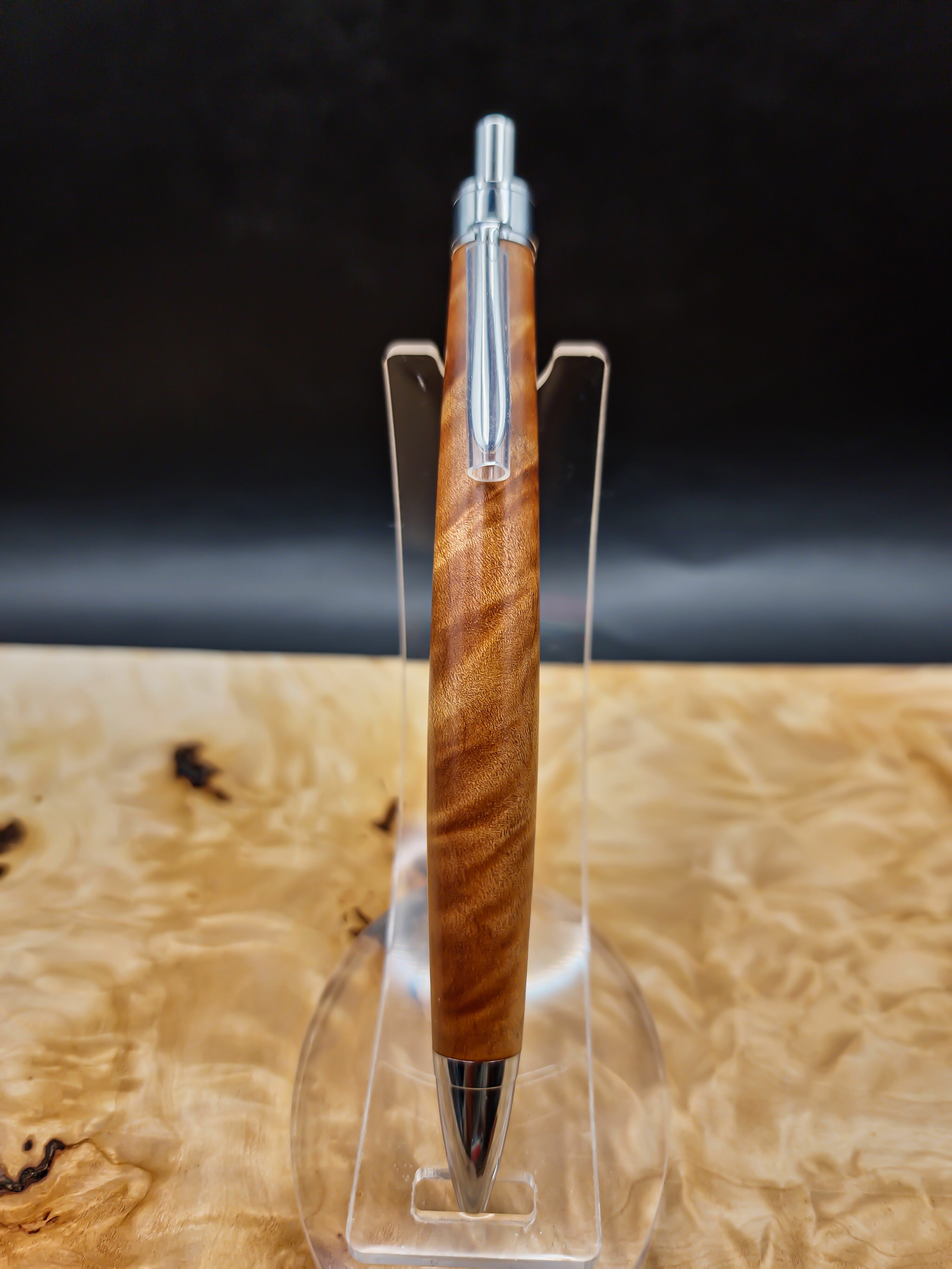 断定できないので不明材で紹介しますが、杢目はストレスカールやキルテッドのように板目に出る深い杢が出ています。ネームブランドではなく、見た目で惚れてくださった方に届けば幸いです。鏡面仕上げのうるツヤきゅるんきゅるんの可愛らしい仕上がりです。