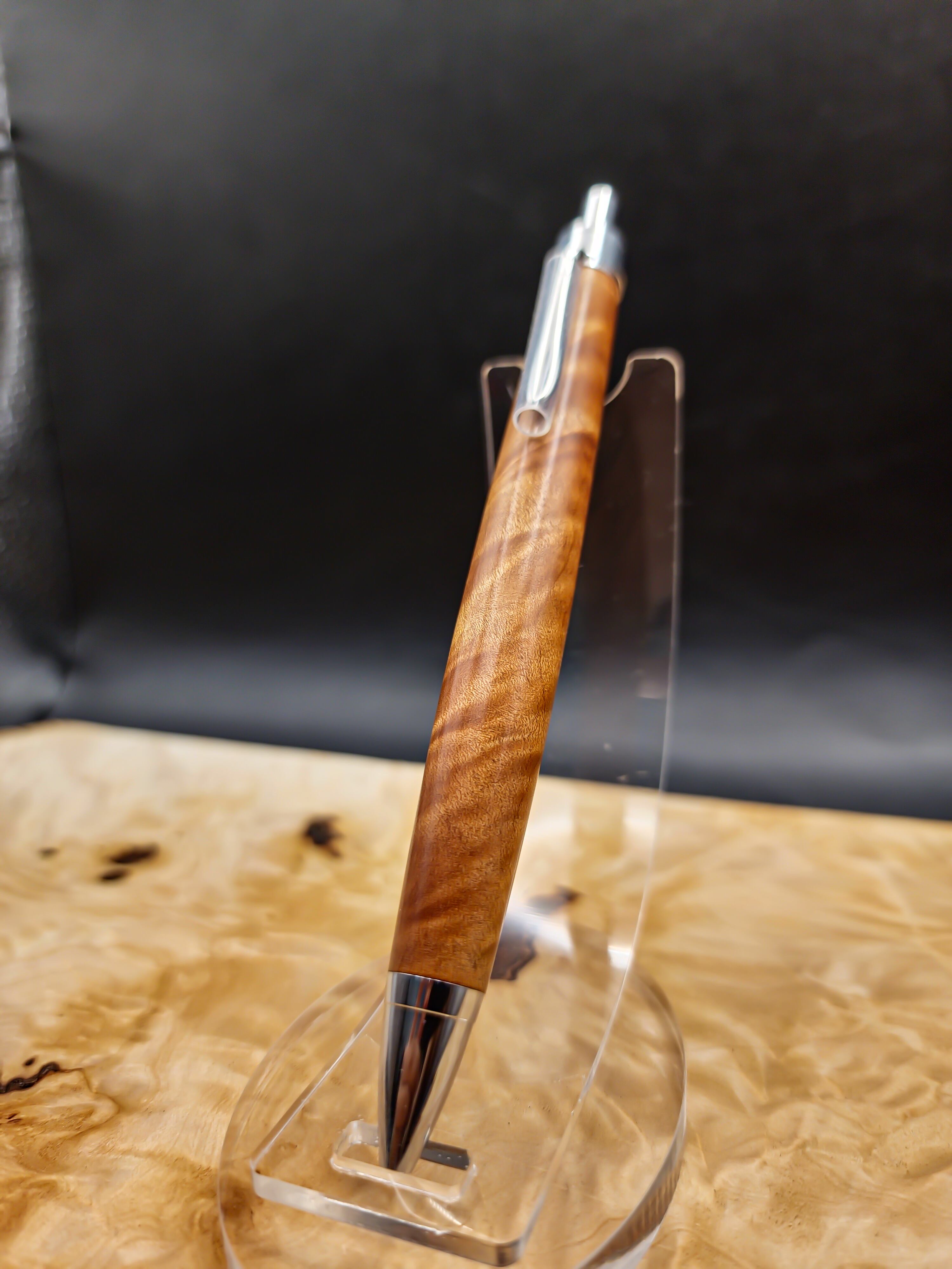 最初はメープルっぽい木目で、そのつもりで在庫保有していましたが削ってみると香りがする材で、バターやマーガリンのような香りが漂い迷宮入りしました。木目が似た材でマドロナがありますが、マドロナであればもっと酸味のある香りと、明るいベージュのような色味が多いはずです。