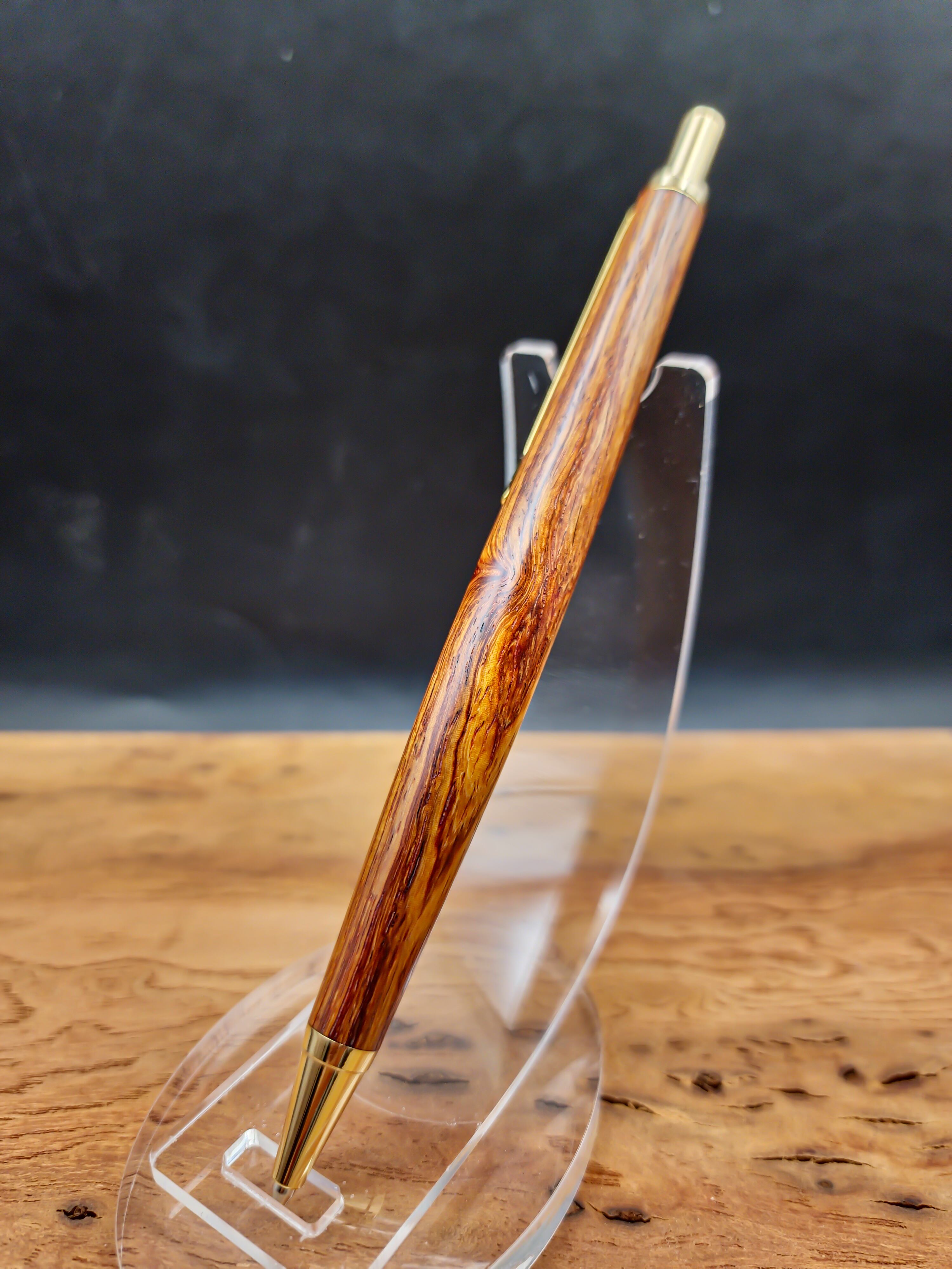 濃いめなチューリップウッドによく似た色味と木目の材でした。