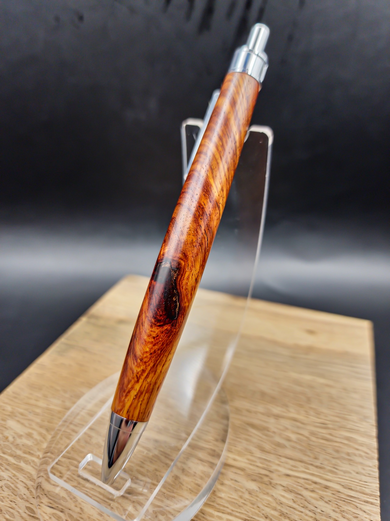 濃いめなチューリップウッドによく似た色味と木目の材でした。