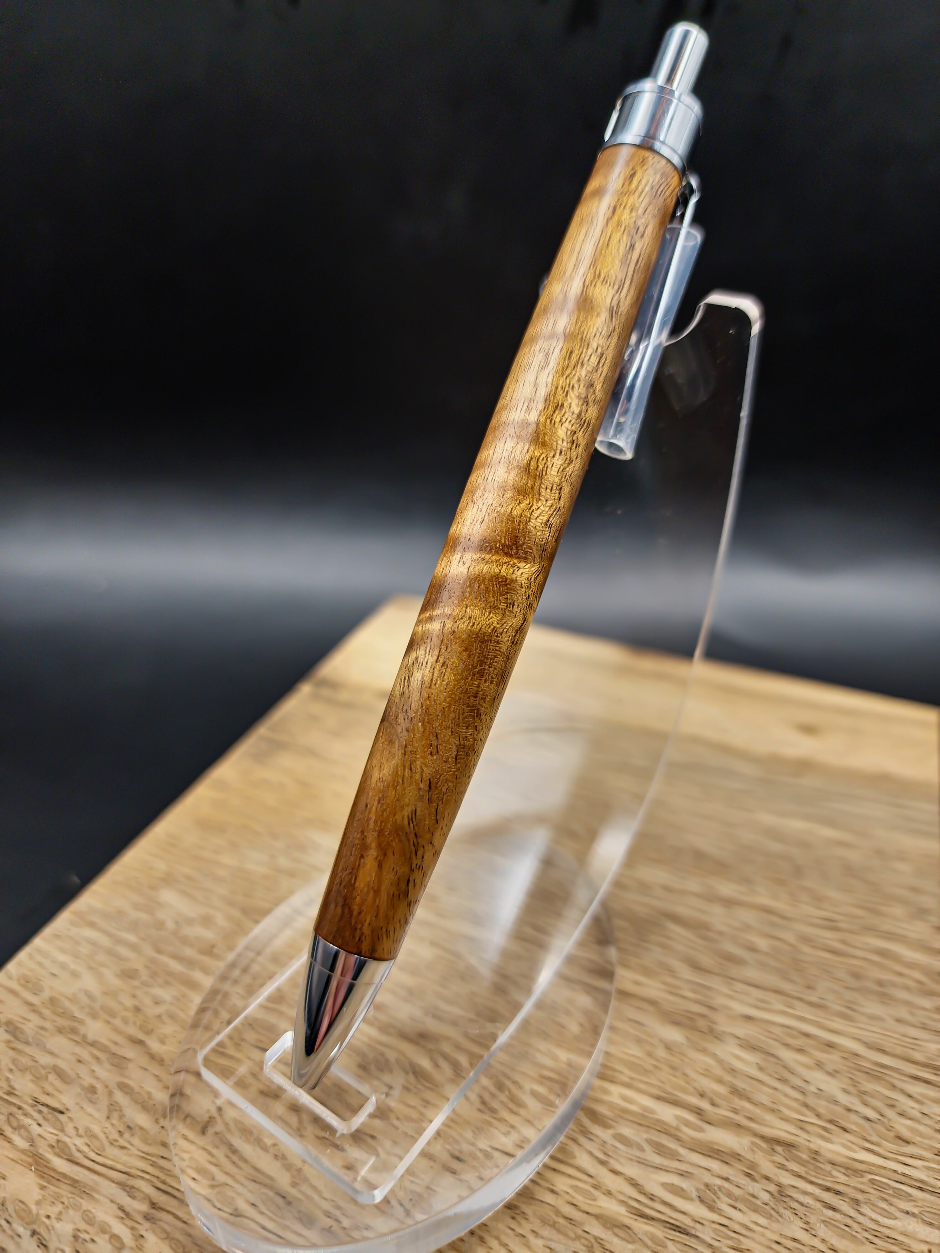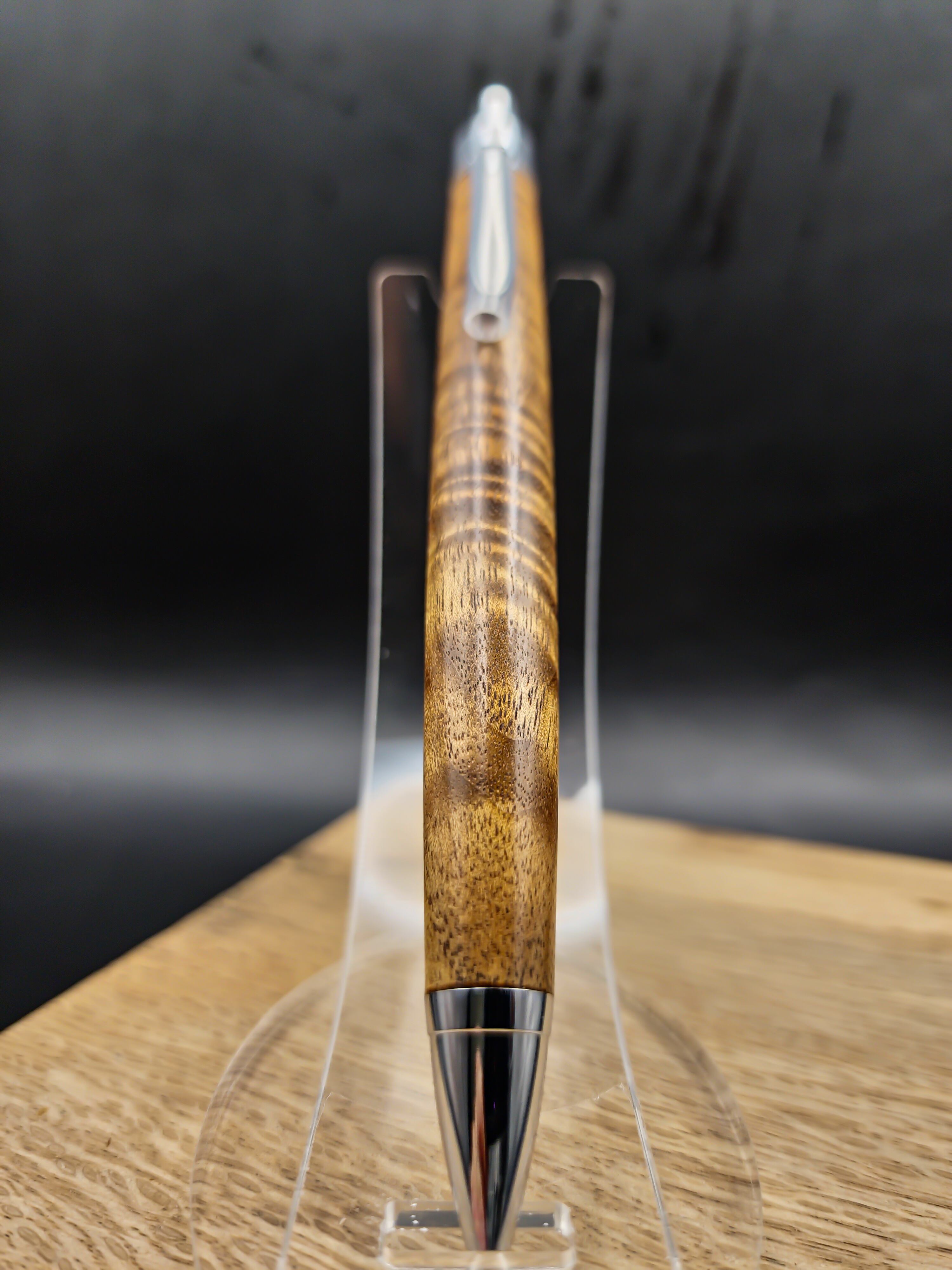 同じ"杢"であることには違いないのですが、見た目における分かりやすい違いと言えば杢が柾目に出るか板目に出るかの違い。通常の杢は柾目に出ます。一方、玉杢やストレスカール、キルテッドなどと名前がつく杢は板目に出ます。木目がうねる向きの違いが……ウンヌンカンヌン