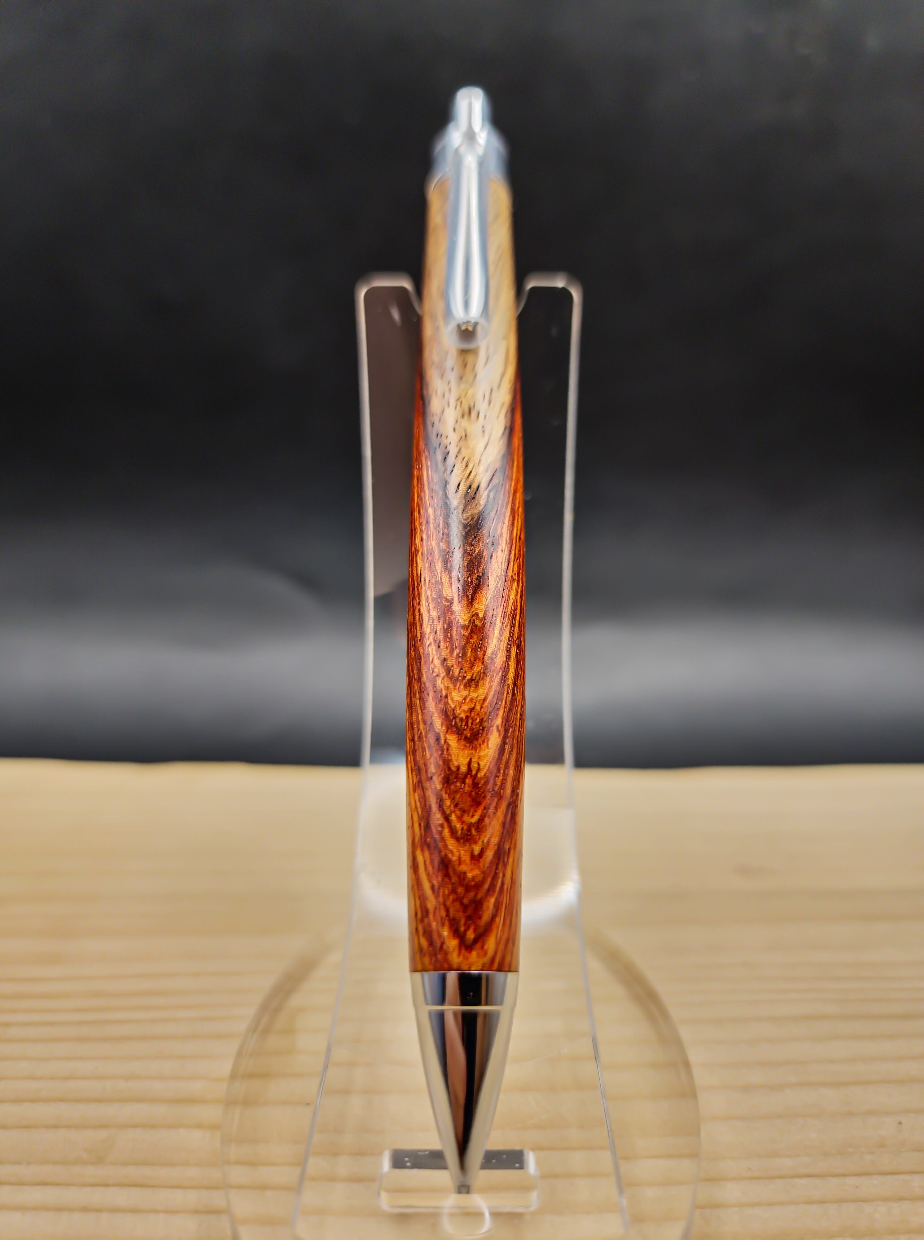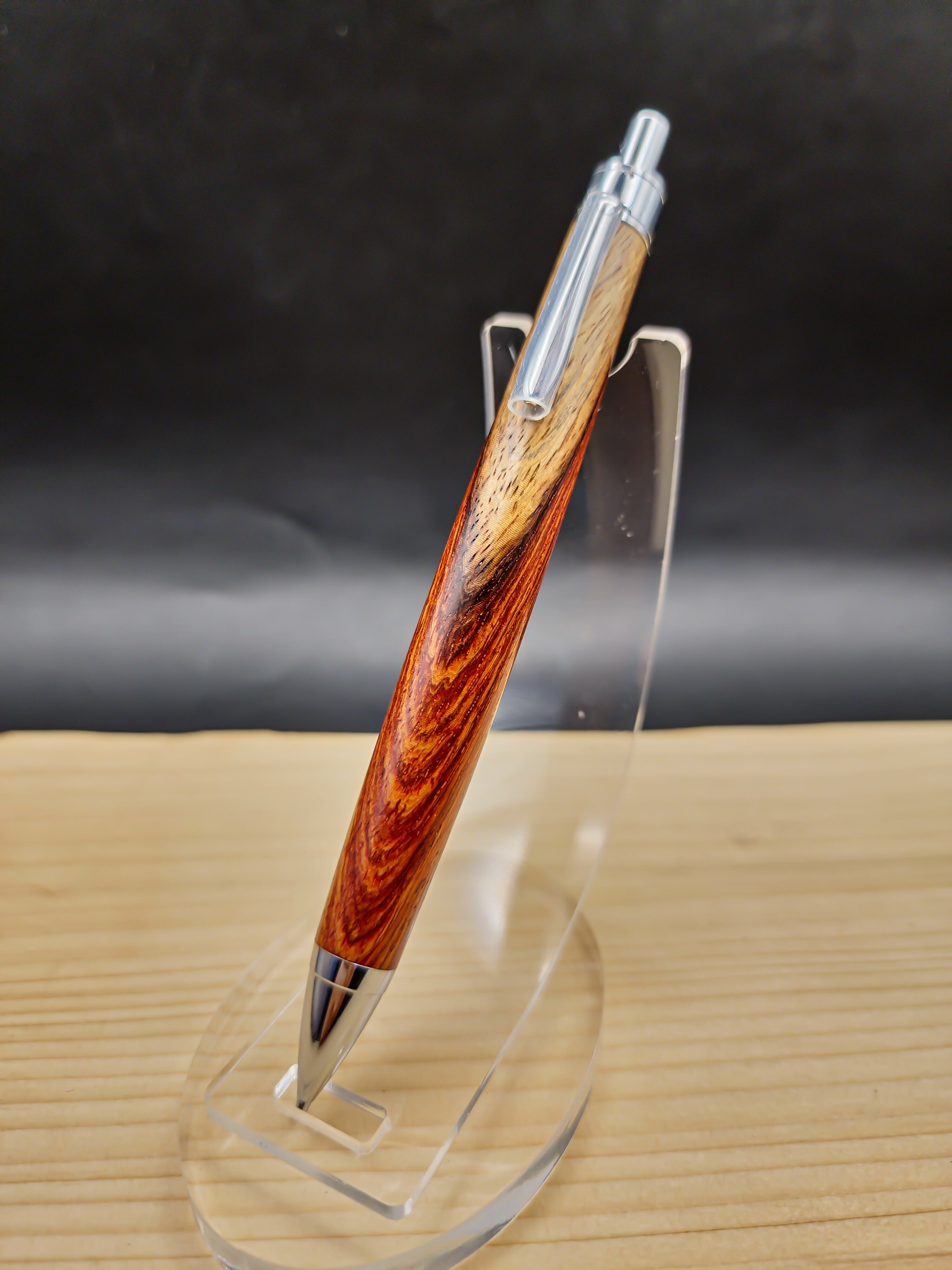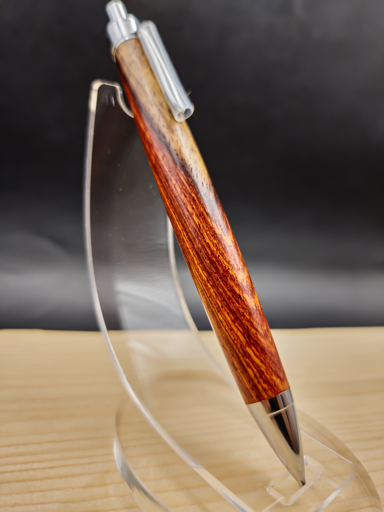 濃いめなチューリップウッドによく似た色味と木目の材でした。