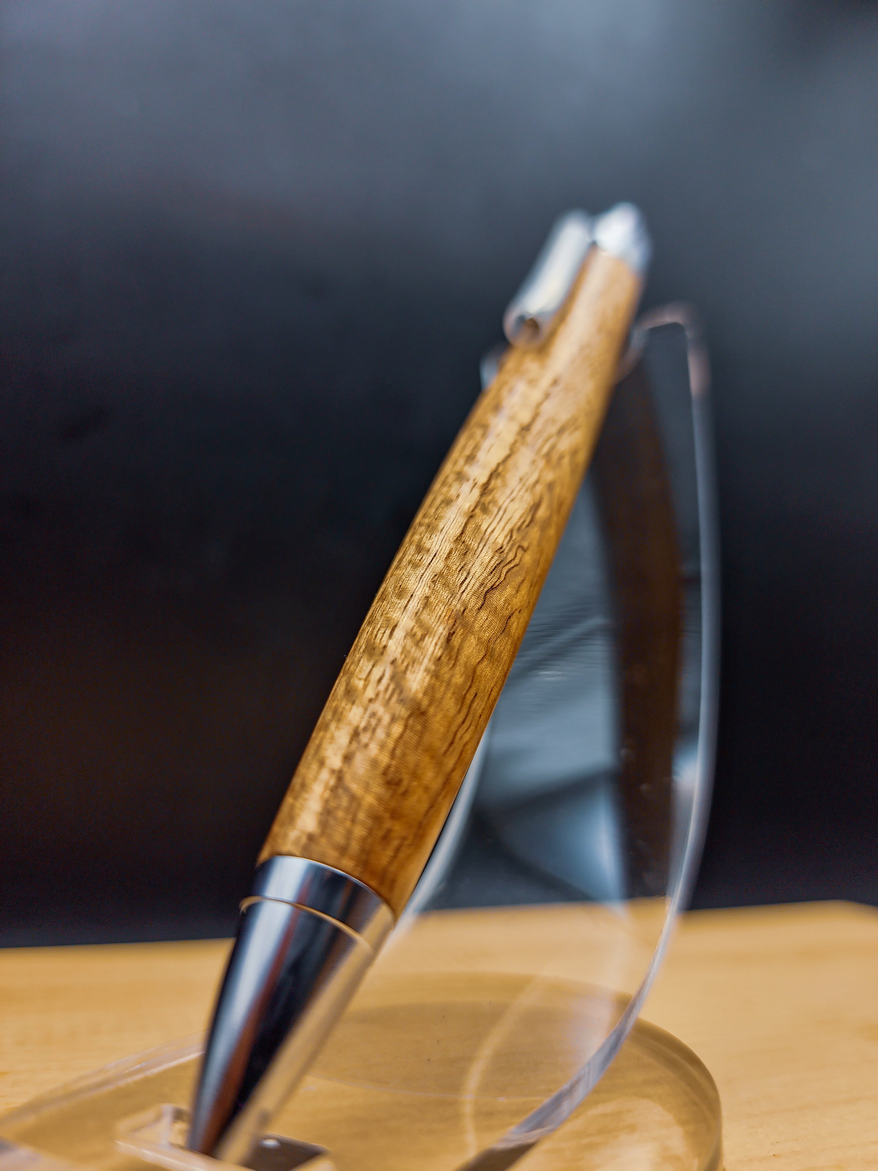 これでもかというほど細かく縮んだ花梨。産地や個体によって色味や材質に差があるようで、この子は色薄めで柔らかめな個体。香りは花梨らしく甘いカリン香がします。部分的にブルーステインが入ることもありますが今回はシラタと赤身のツートンです。