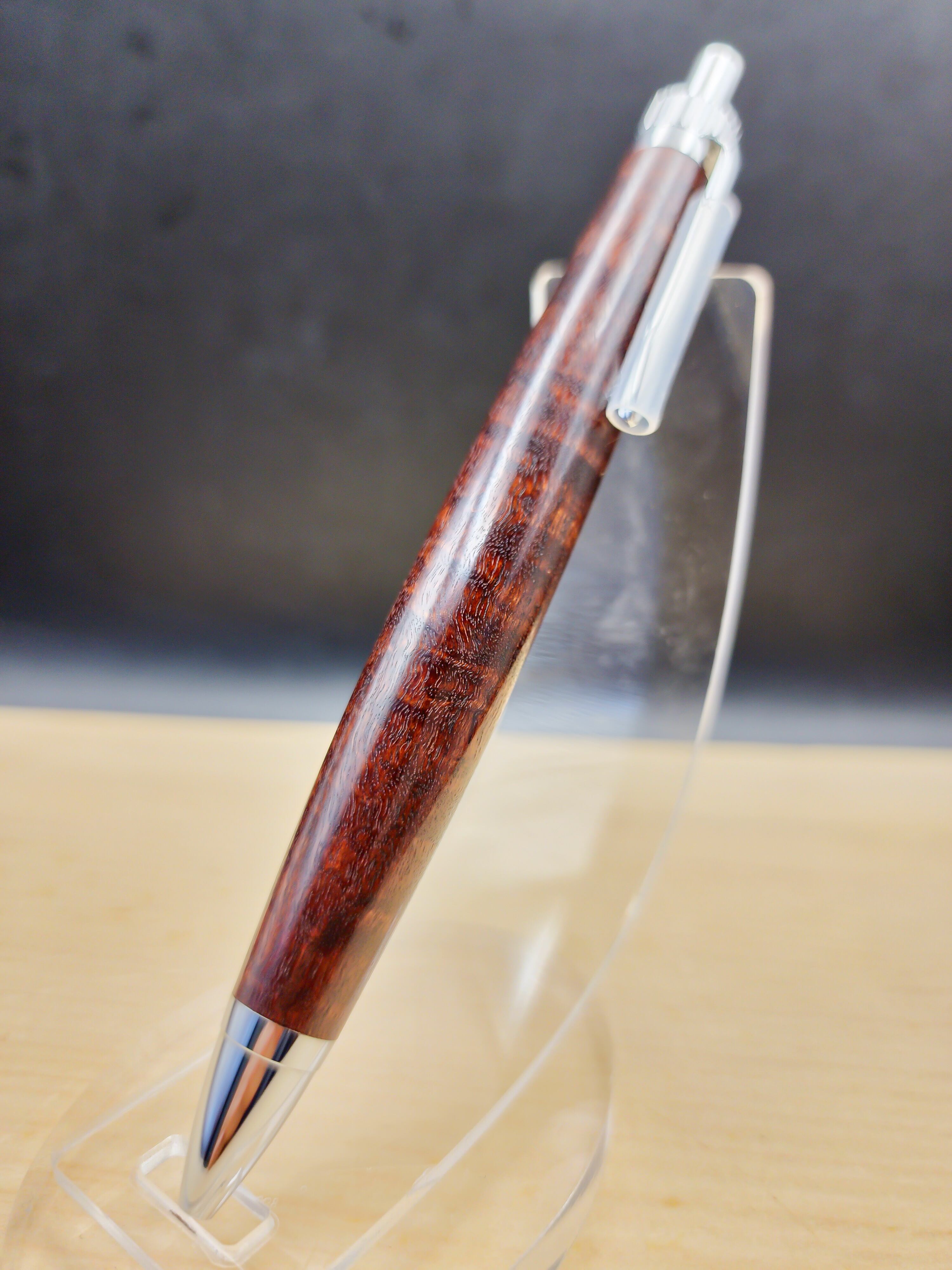 紫のような茶色のような、独特な色味をしたその奥には確かに揺れ動く可憐な杢が眠っています。