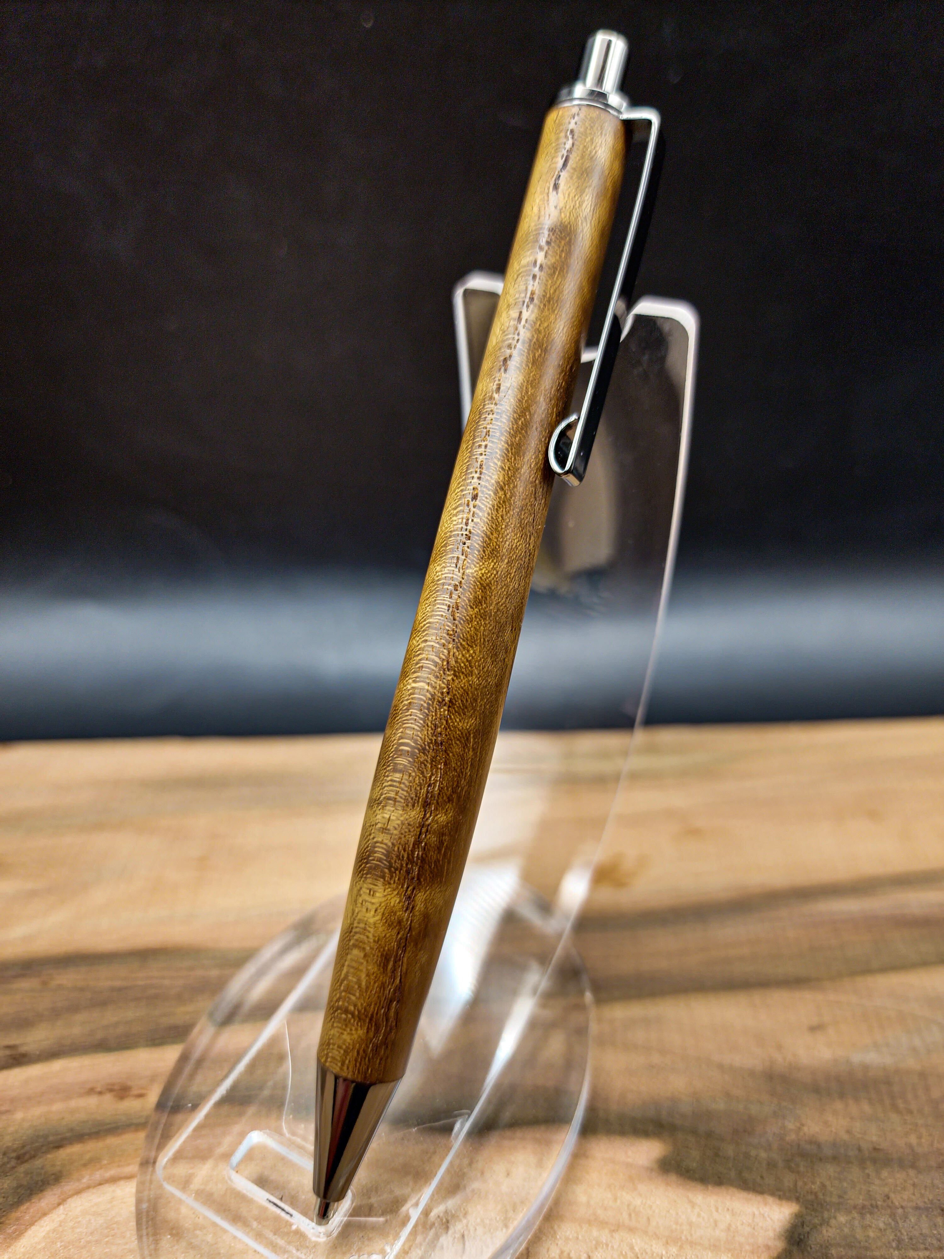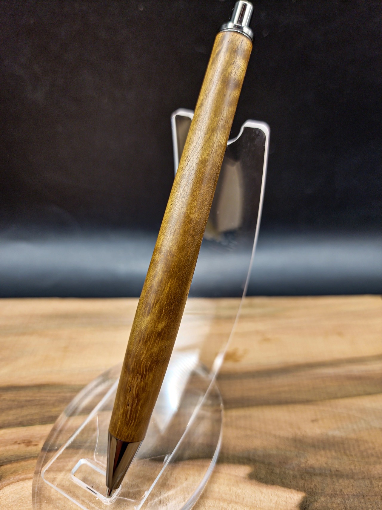 皮目の黄色いラインが特徴的なキハダ。今回はその神代木をご用意いたしました。通常のキハダに見られるワイルドな木目・杢目に神代木特有の渋さが合わさり唯一無二の魅力があります。磨きにかなり苦労しましたが半鏡面程度に合わせることで使い古したようなビンテージ感あふれる1本に仕上がっています。