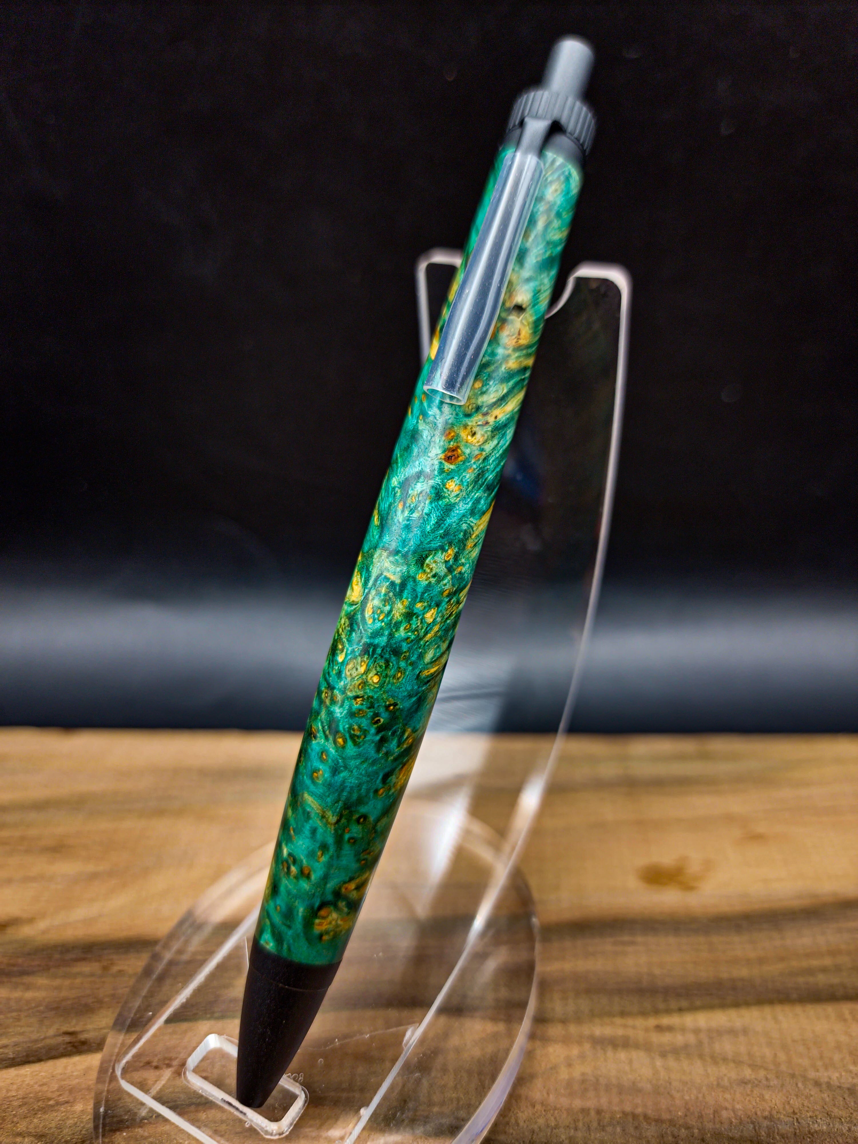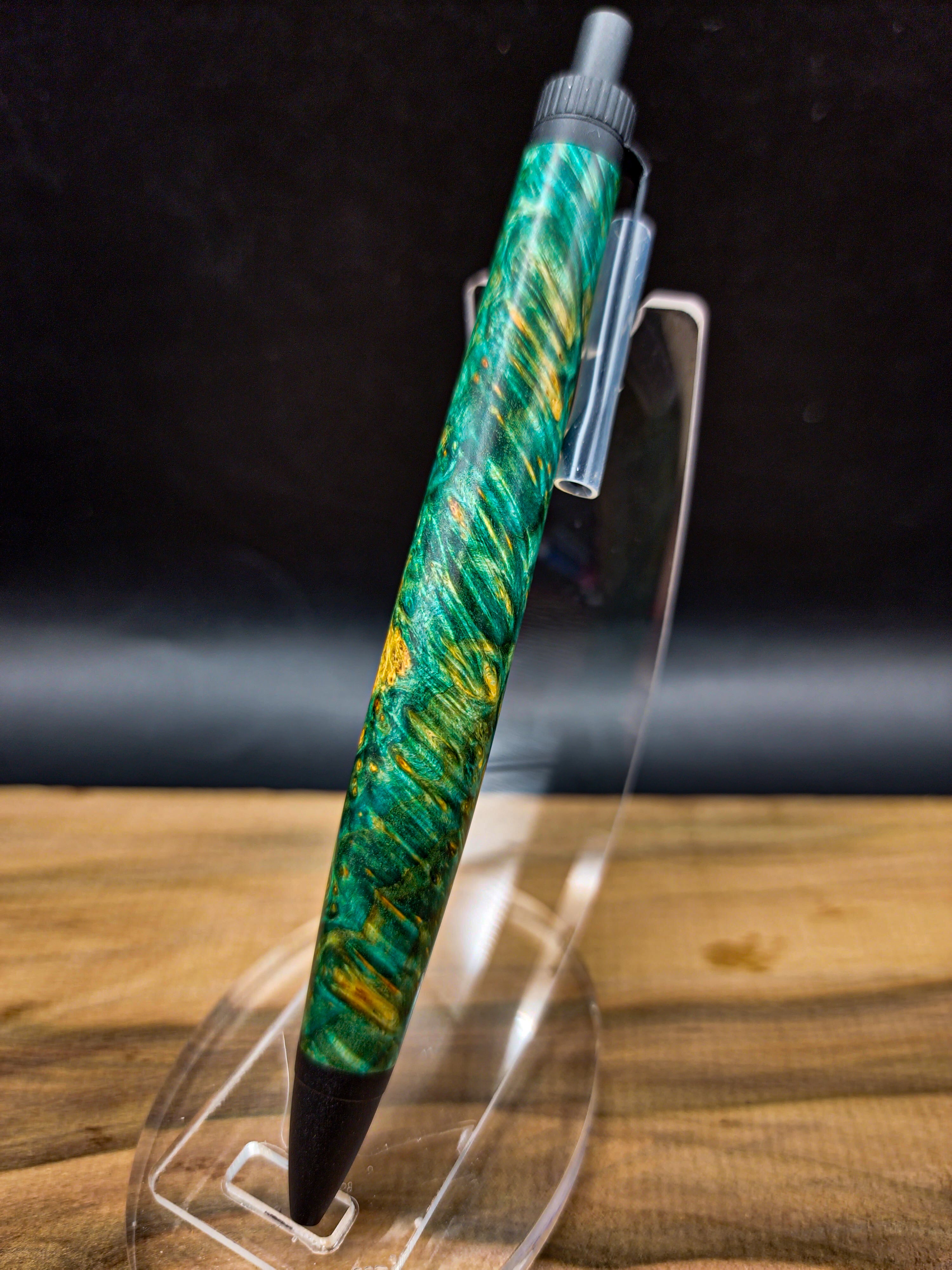 木材に液体樹脂を含浸させ、内側から硬化させることで強度を底上げするスタビライズド加工。含浸させる樹脂に着色することで内側から色付け、削っても色が満遍なく残る素材が完成します。