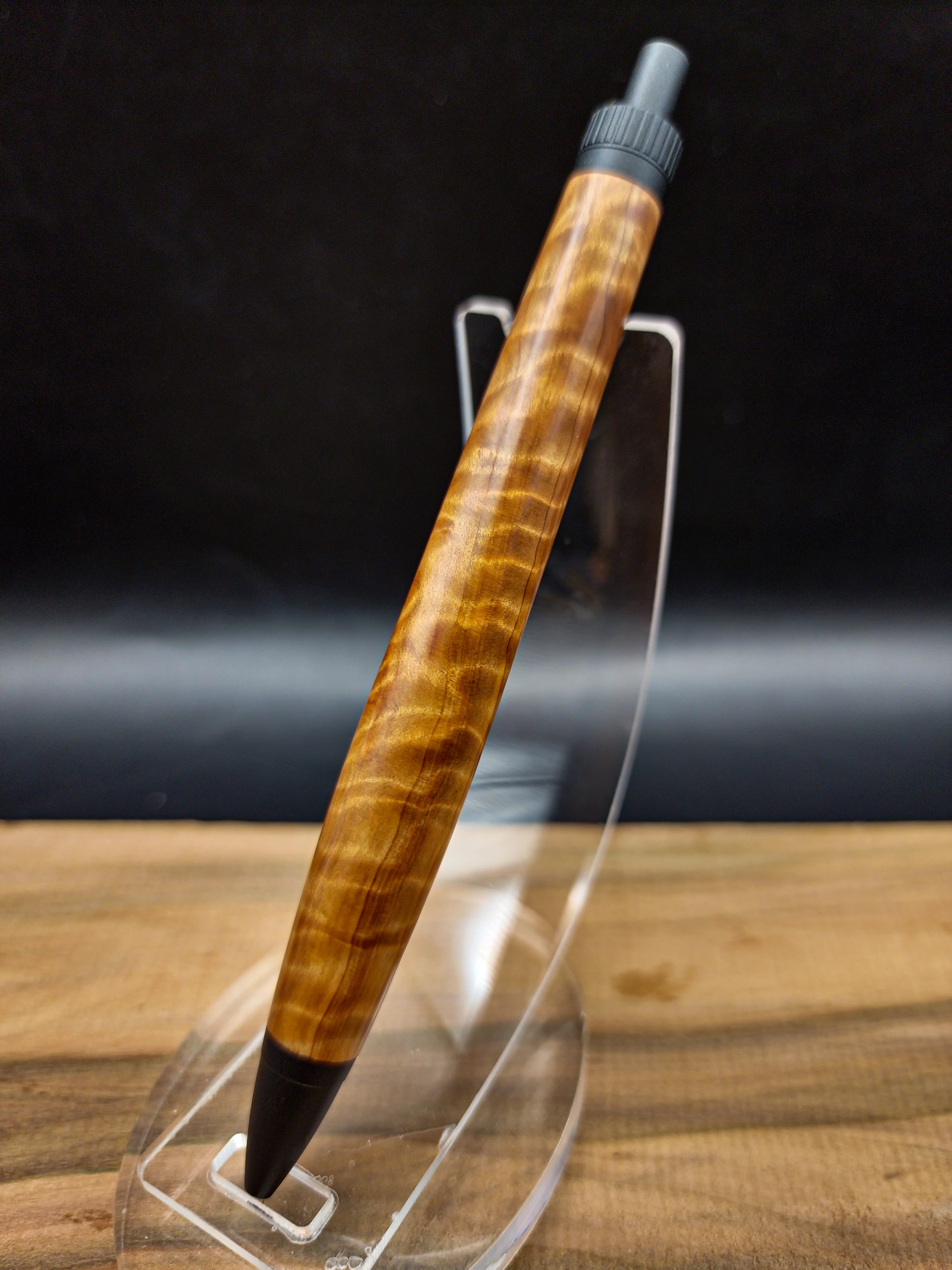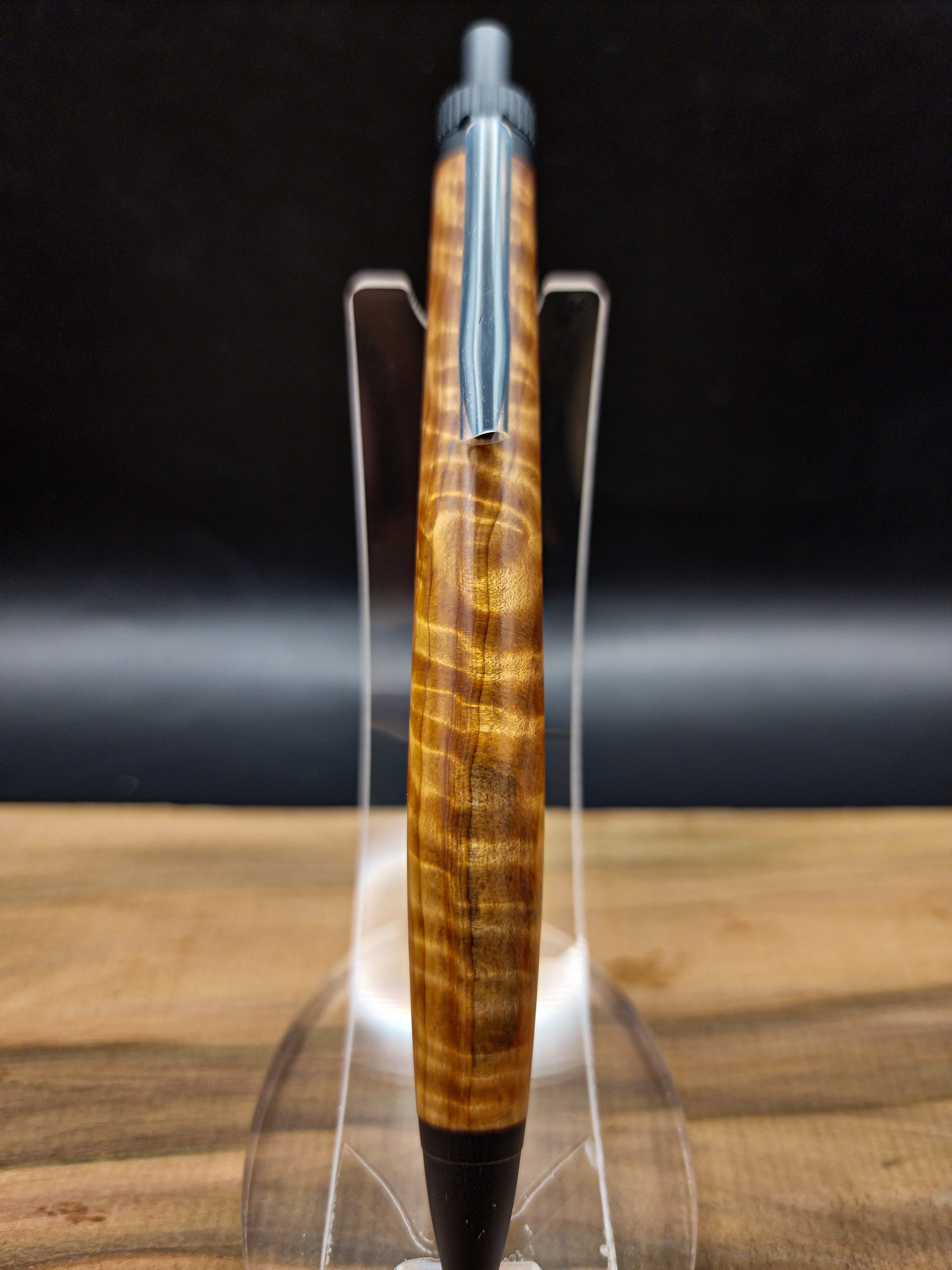温かい紀州で、冬場もすくすくと育った紀州杉と違い、冬目(茶色の濃い部分の木目)が幅狭く、瘤材には珍しい目の詰まり方に見えます。
