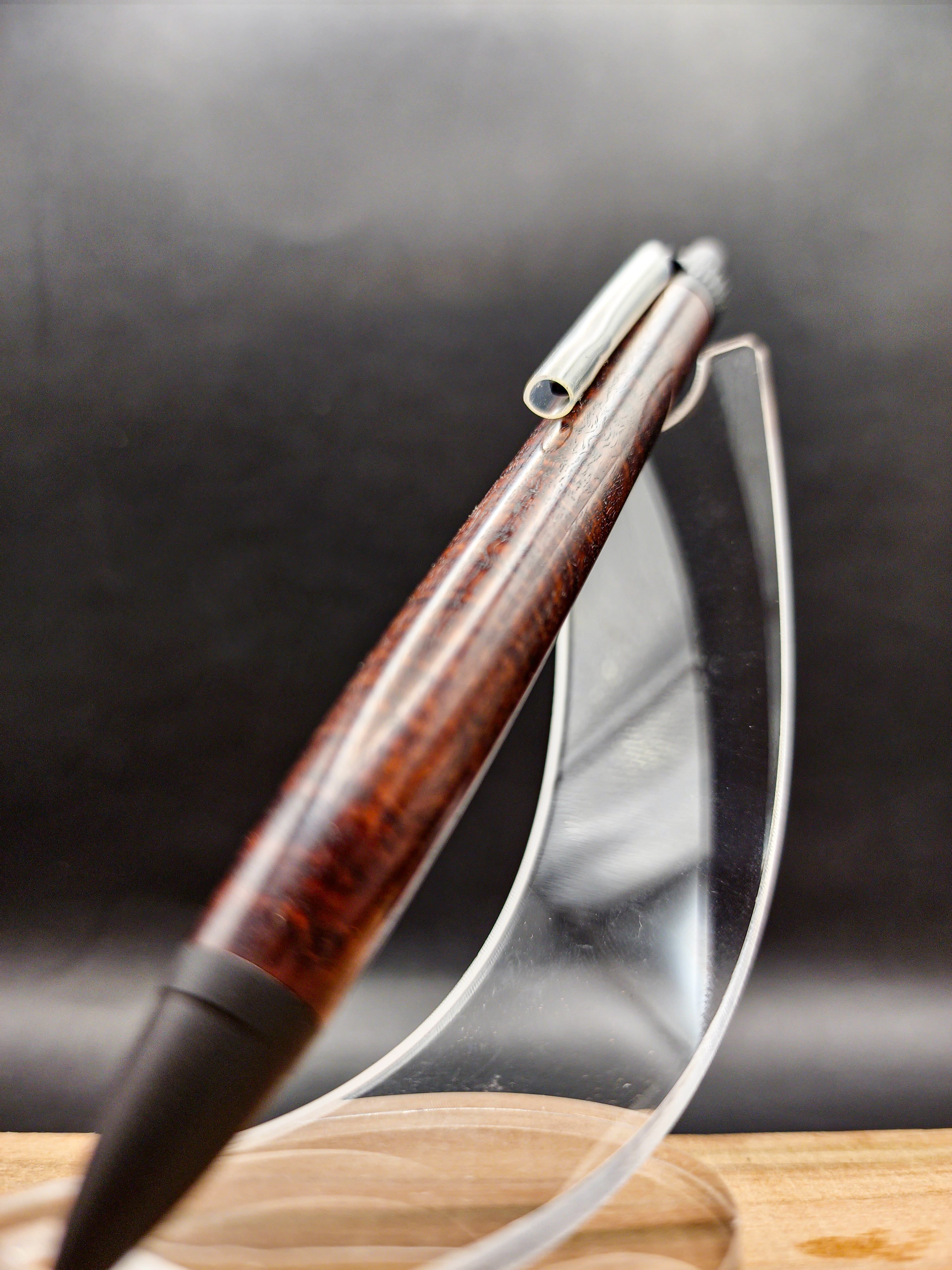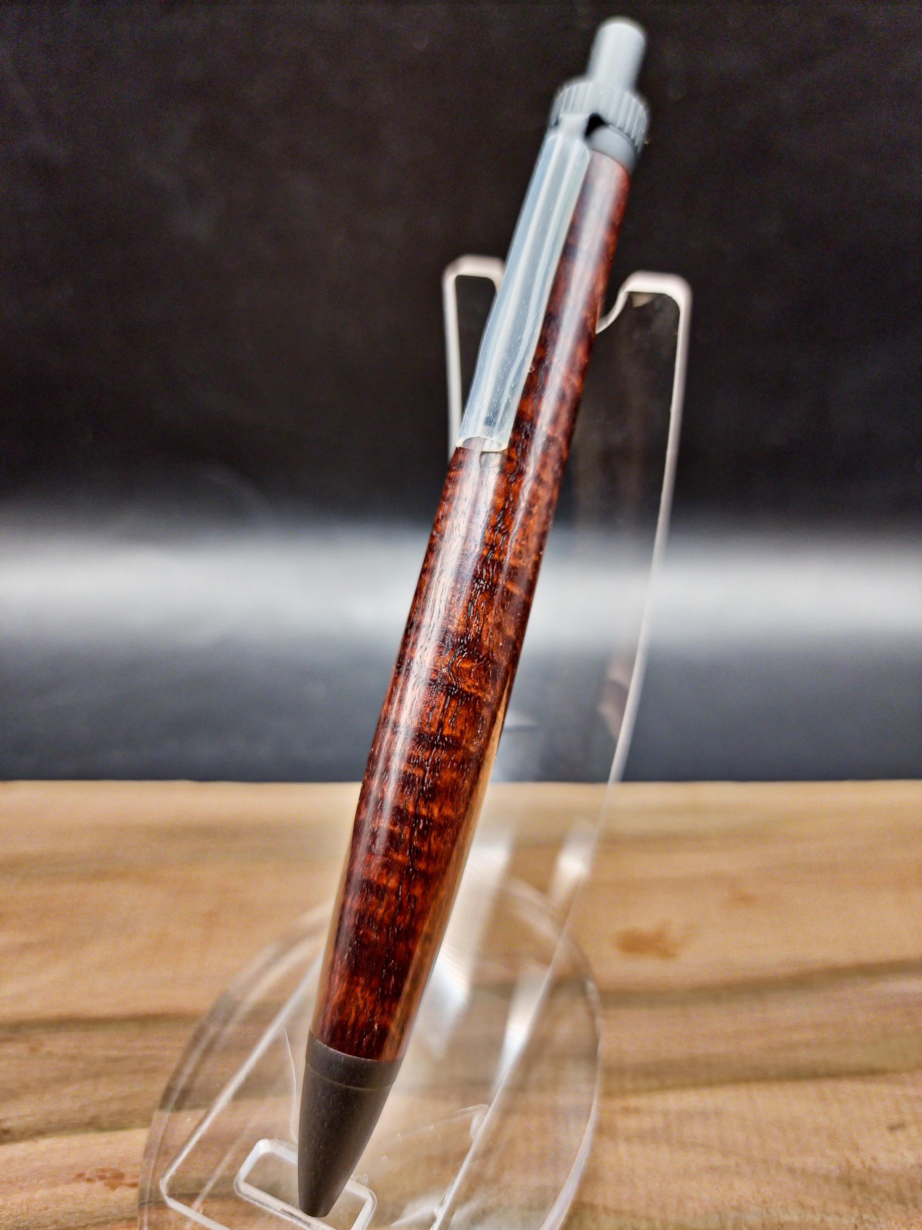 紫のような茶色のような、独特な色味をしたその奥には確かに揺れ動く可憐な杢が眠っています。