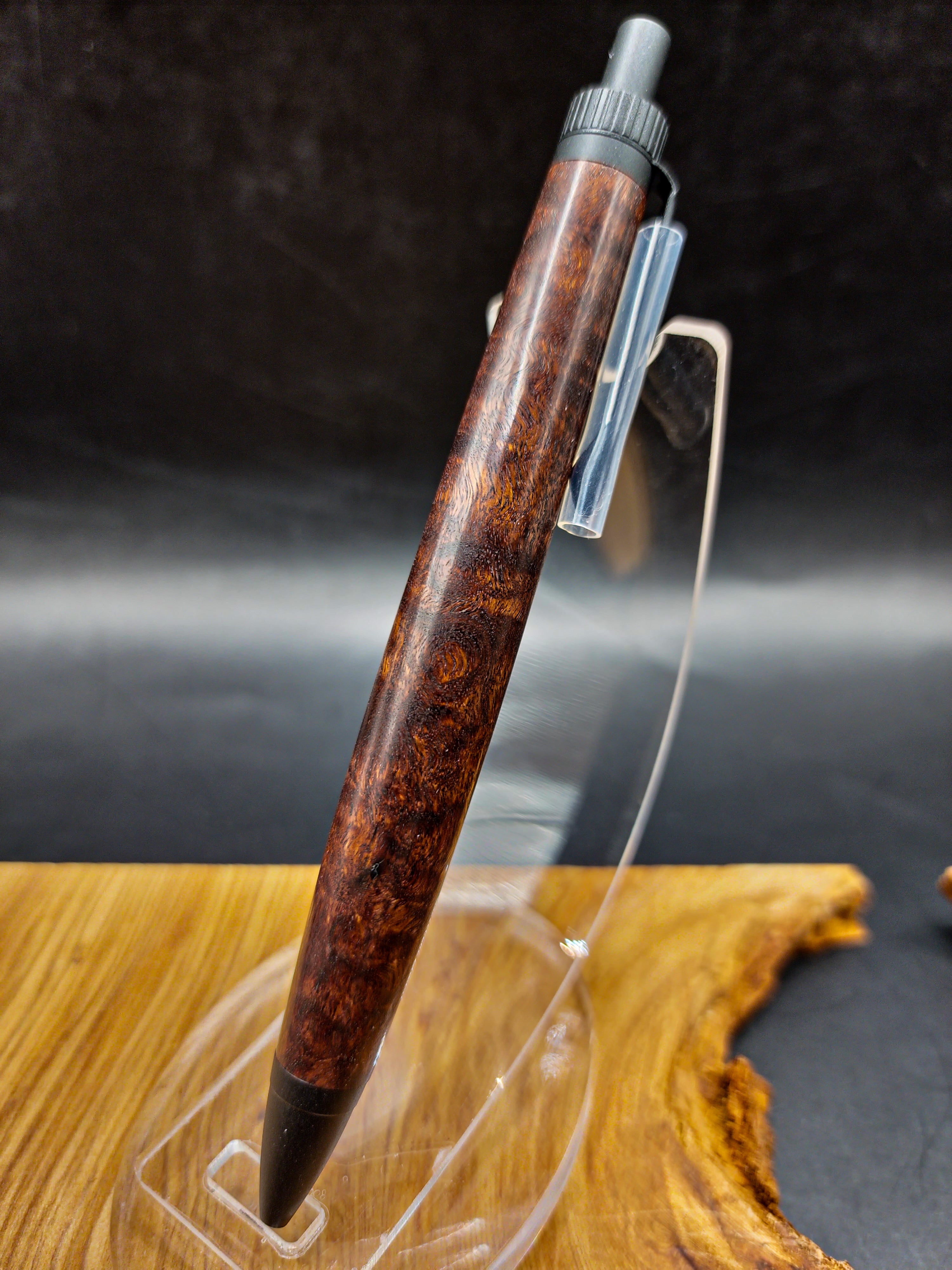 紫のような茶色のような、独特な色味をしたその奥には確かに揺れ動く可憐な杢が眠っています。