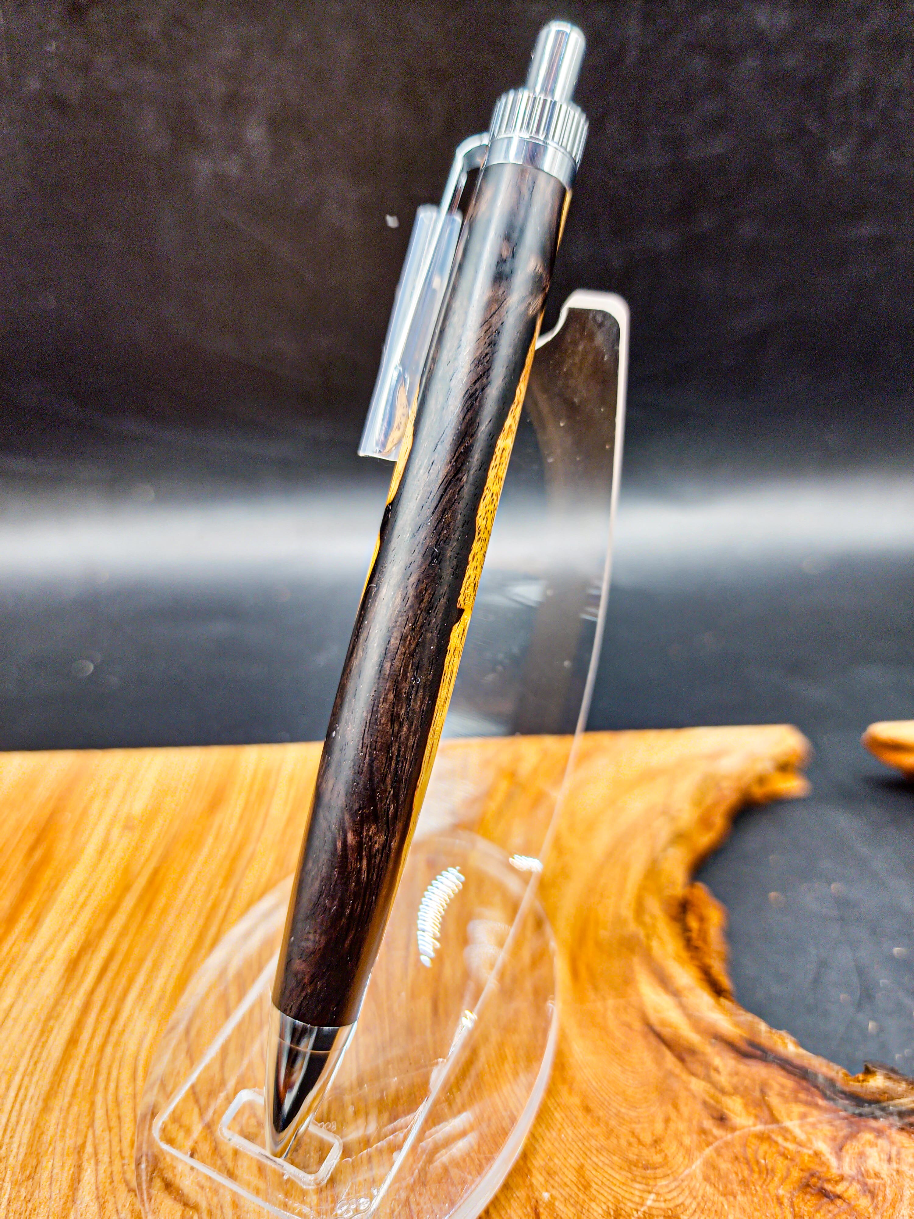 真っ黒な色味のすぐ下に、確かにある木味を楽しんでいただけたらと思います。使い続けることでもう1段階深い艶になるペンです。