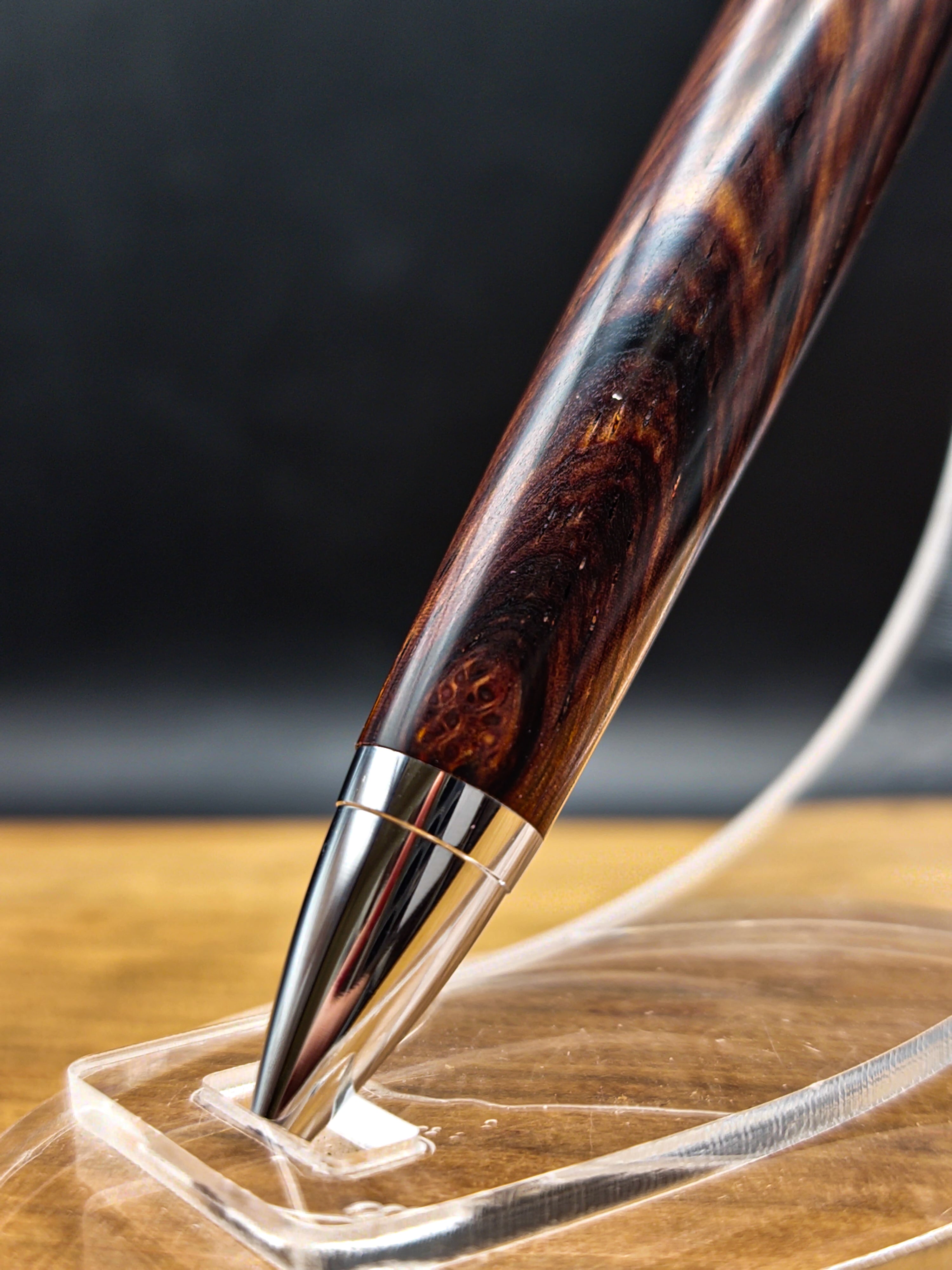 どこをどうやってとっても、どう削っても面白い柄が出る材で、ブックマッチでとった材でさえ丸棒になると顔が違います。