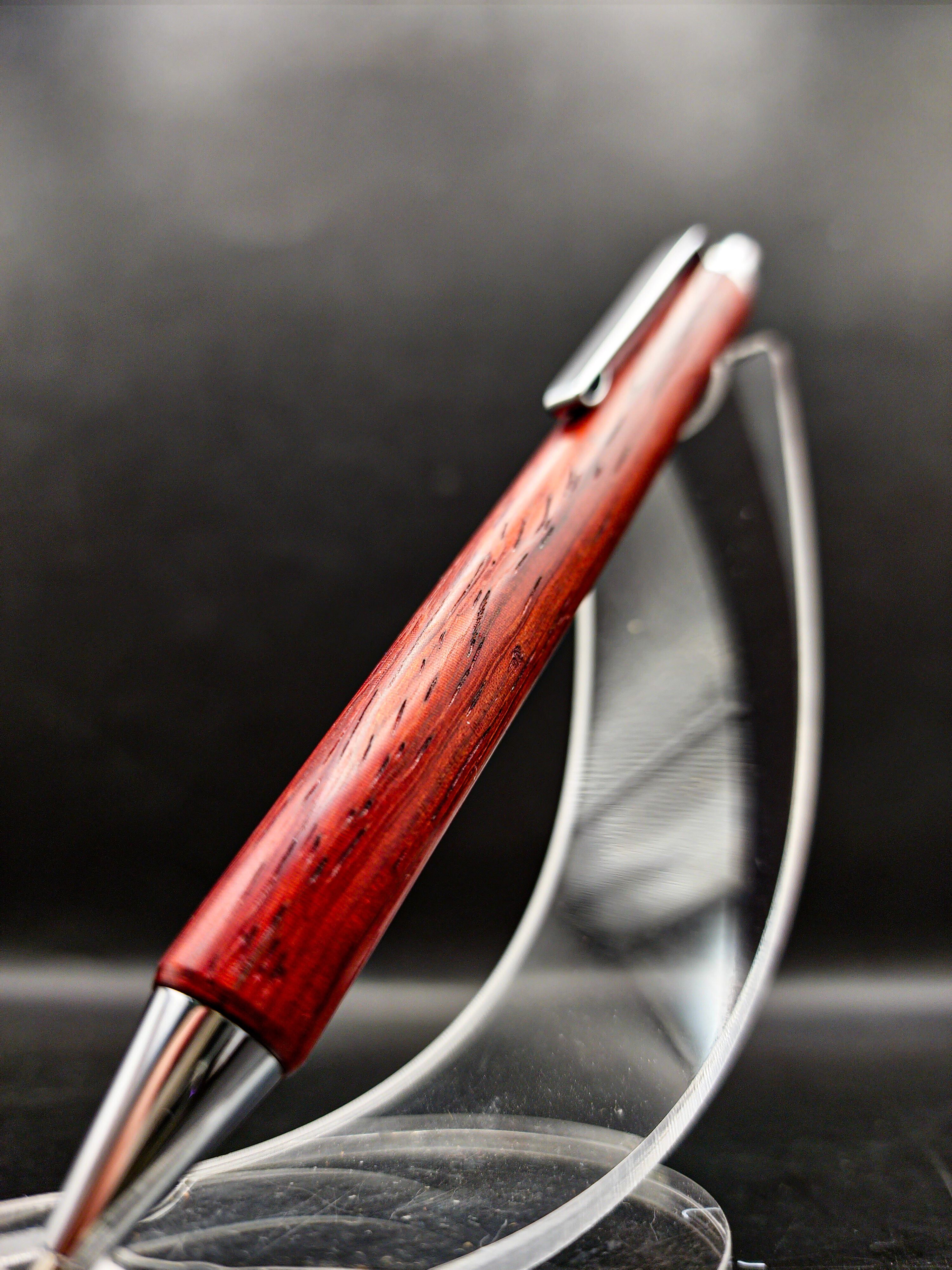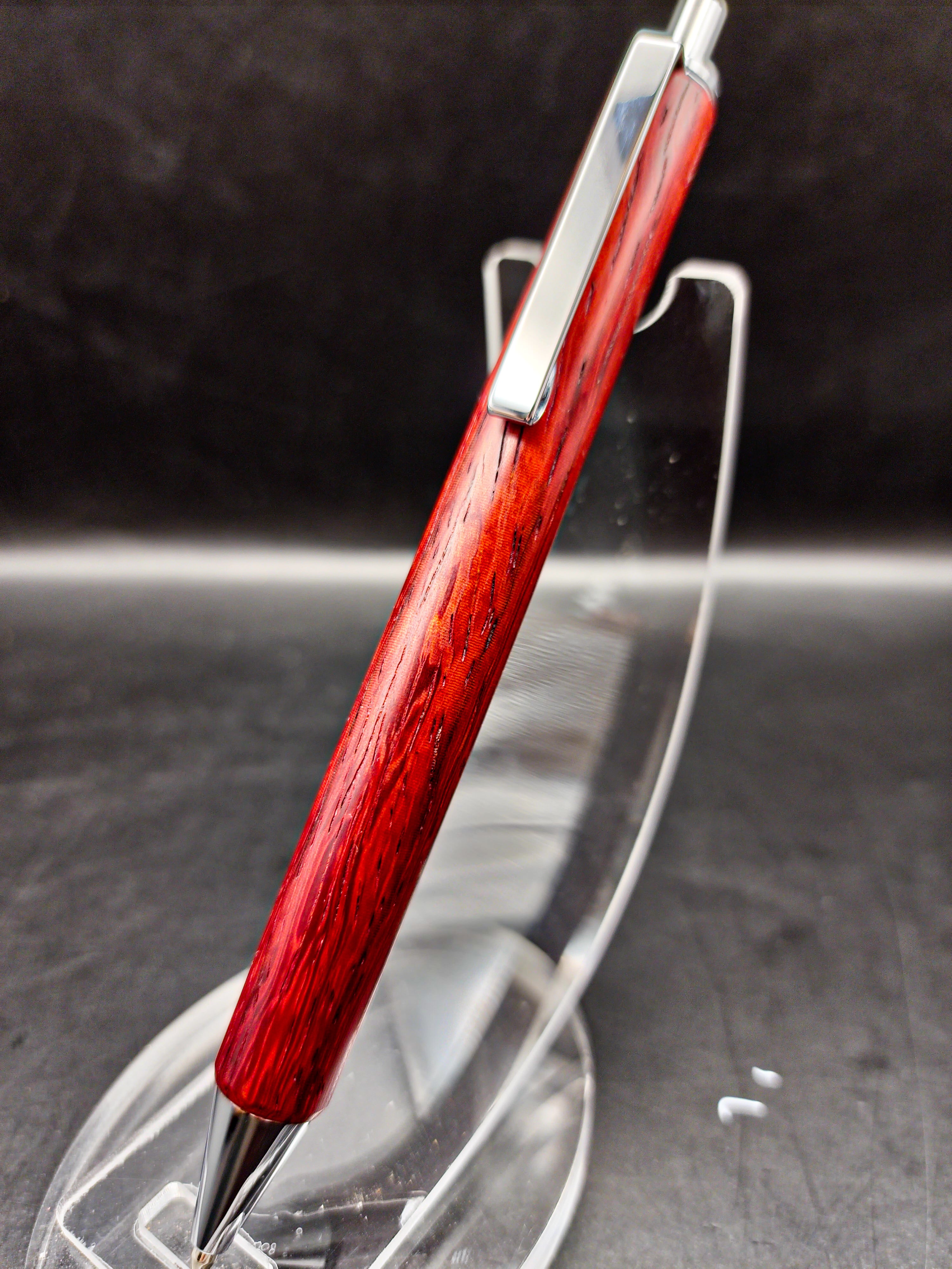 数ある赤い木の中でも導管がはっきりしており、仕上げ次第で表情がガラリと変わるパドックです。目玉のようなはっきりした木目。深さを感じるほどのツヤ感と色味。
