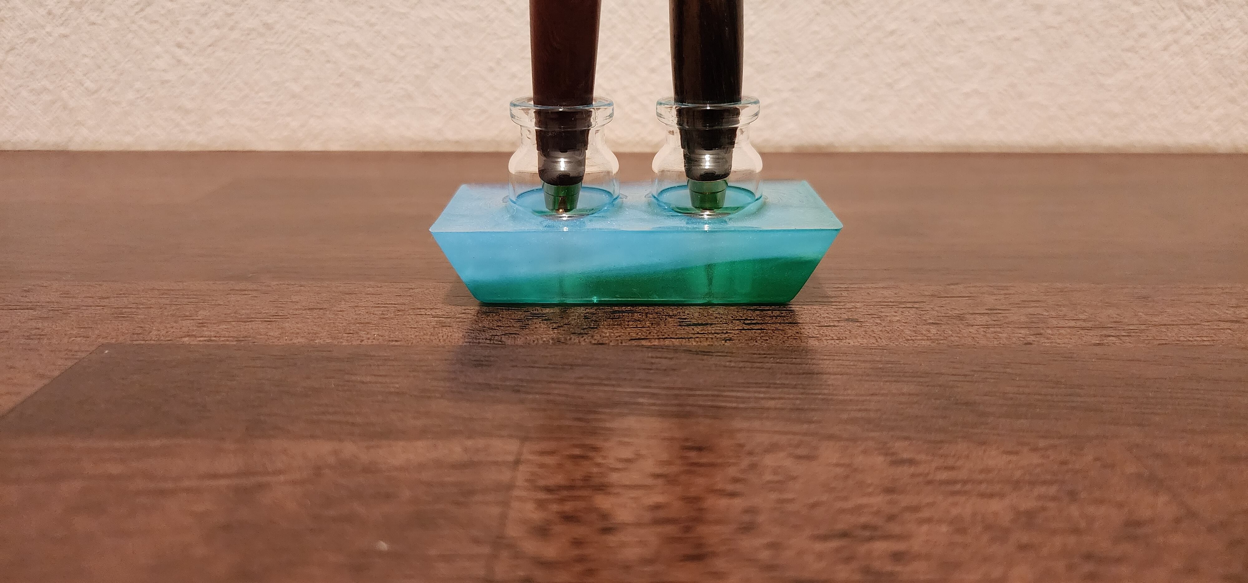 ペンを2本刺すことができます。お好みで粘着マットなどを貼ると安定性が増します。