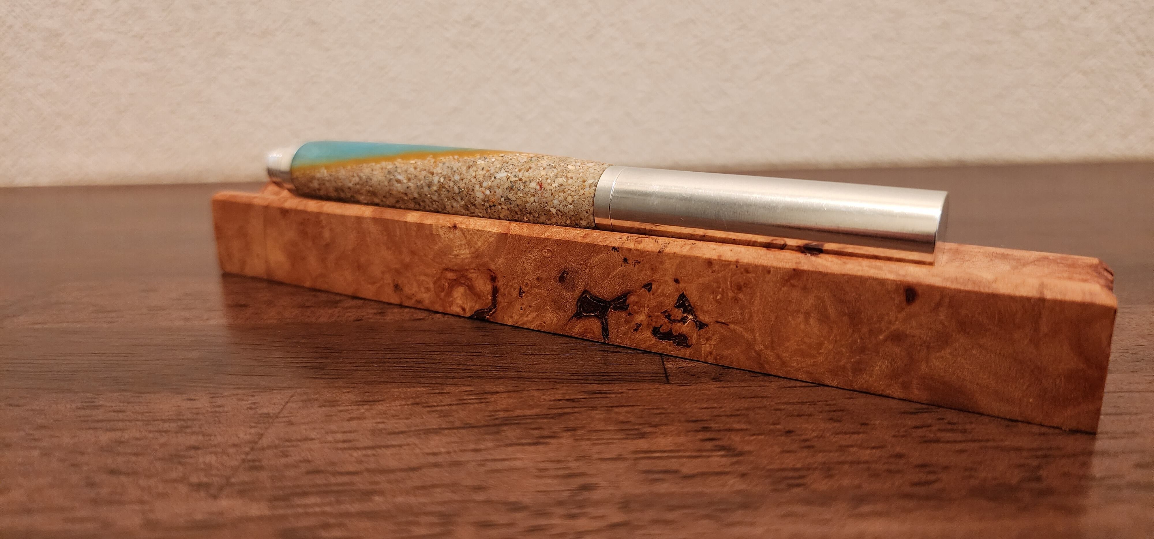 入り皮が入ったかっこよくも優しい杢目をした材です。
