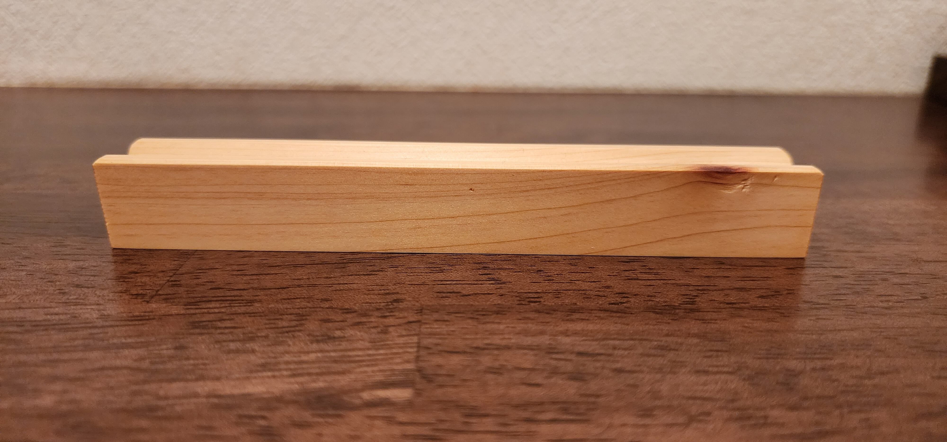 良い香りがします。節が入っており、付近は逆目が残っております。針葉樹にしては固さがあり触り心地もなめらかです。