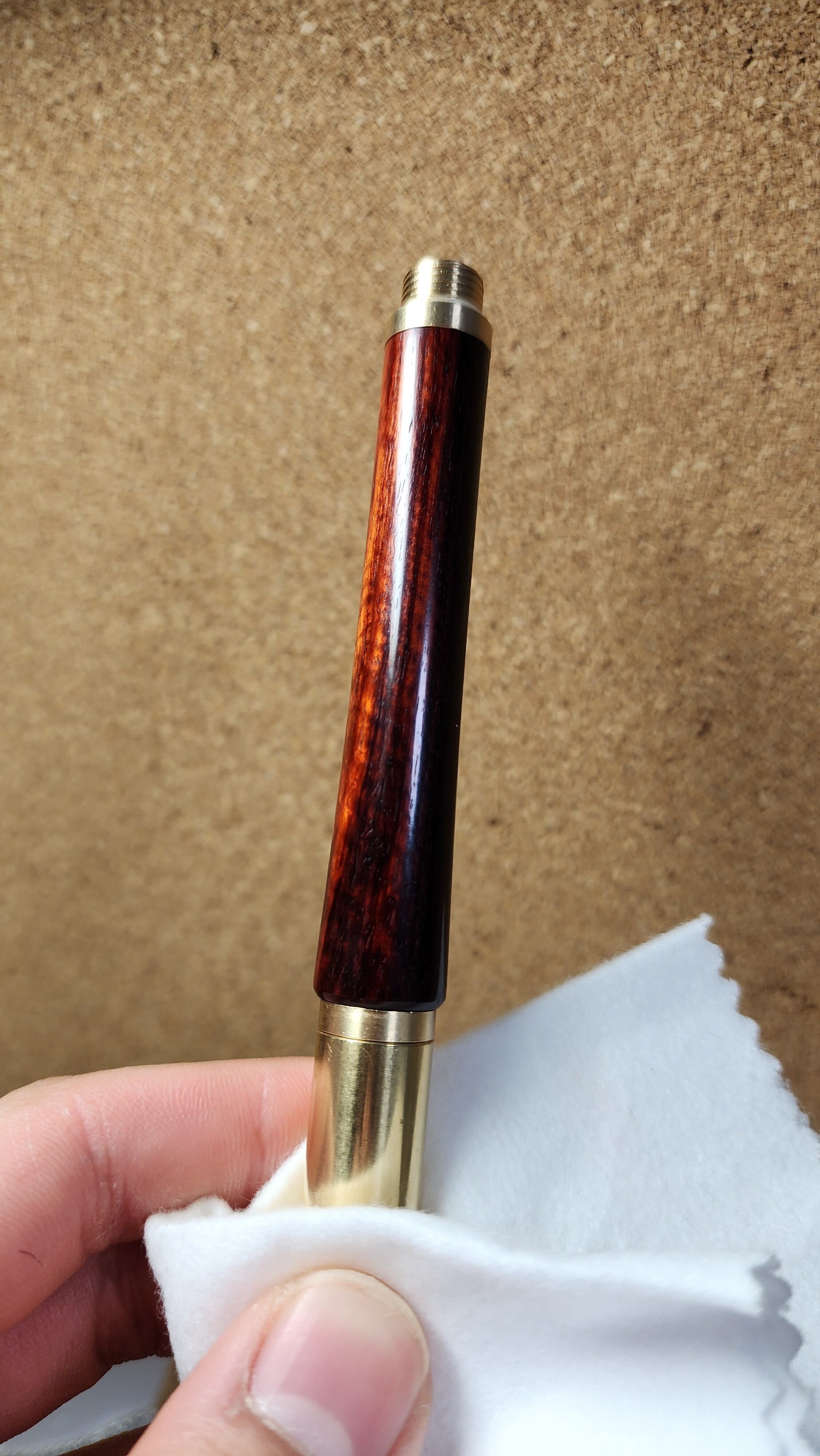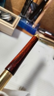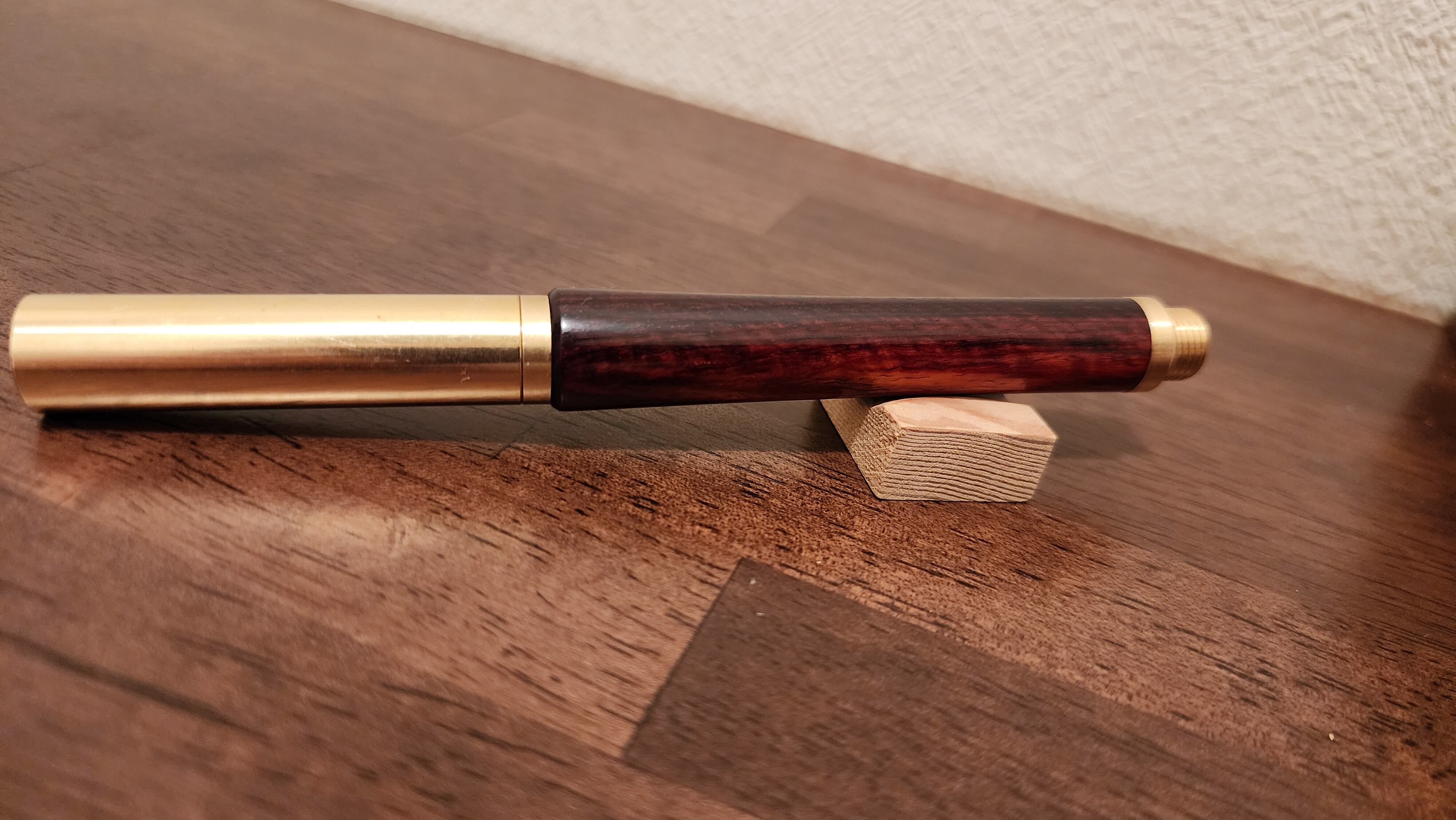 紅木(トチ入り)のブラス製キャップ式ボールペンです。