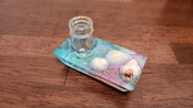 底にはサンゴ砂を、レジンの中には貝殻を封入しております。