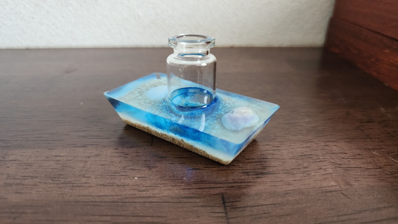 大人気な海カラーに濃いめの青を滲ませています。滲んだインクの躍動感が涼しげでキレイです。