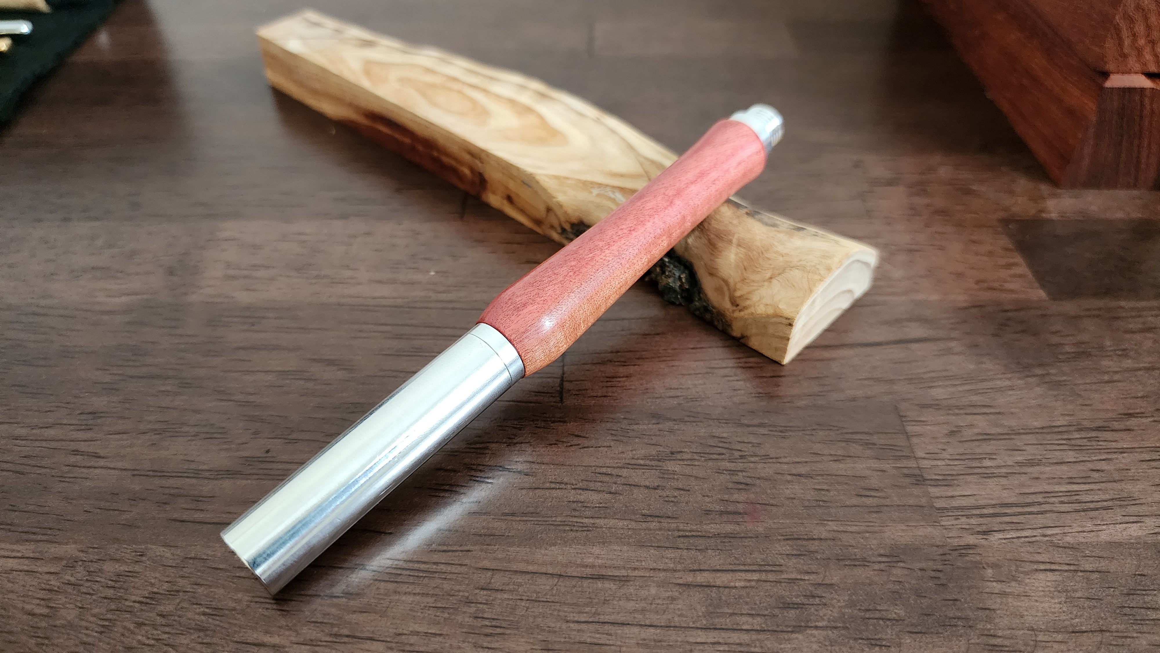 使い込んで艶が出てくると宝石のような見た目になってきます。とても自然のものとは思えない発色の良いピンク色。流通こそありますが貴重な材です。桜の咲くこの時期にぴったりな一本です。