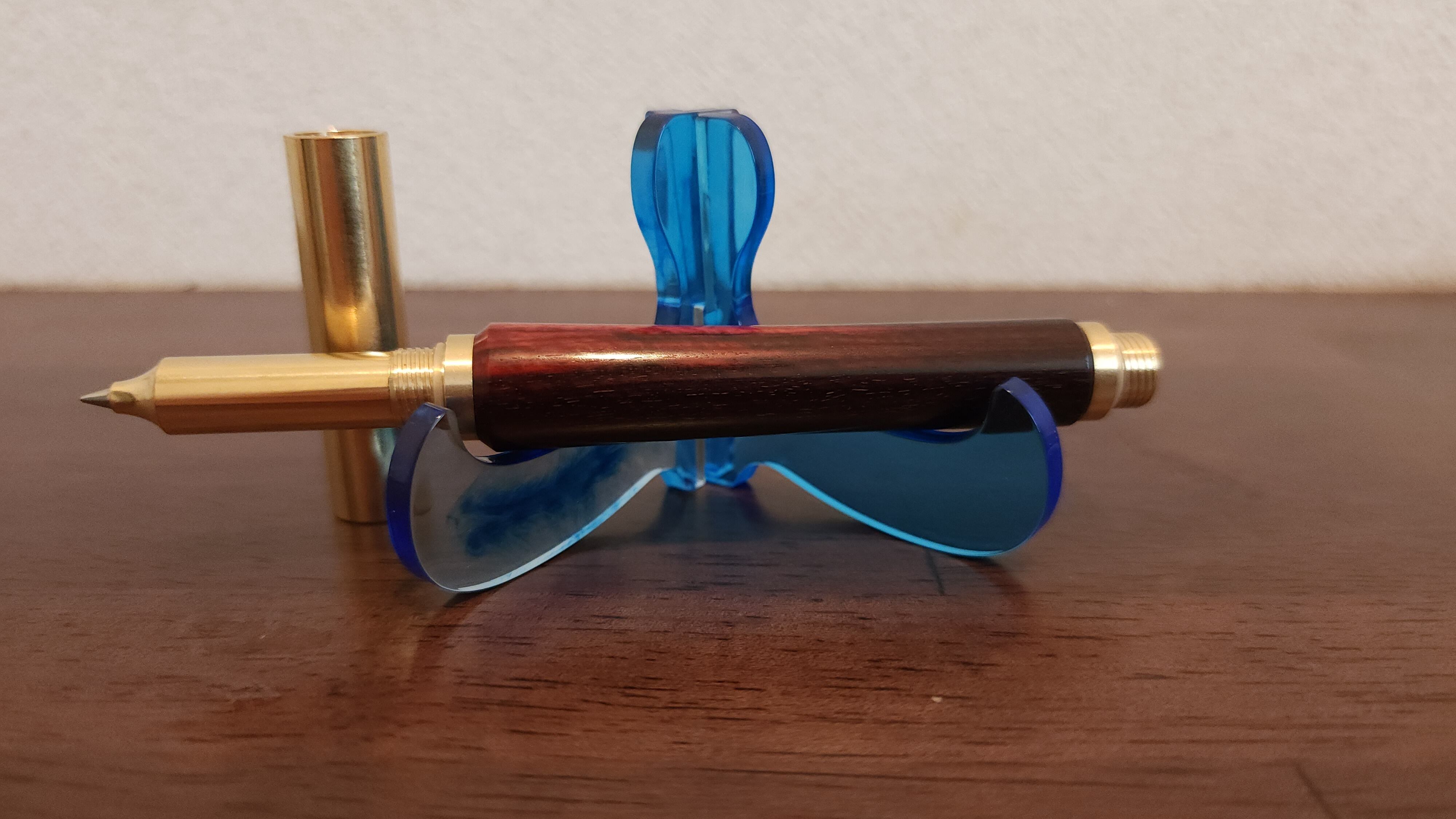 紅木のブラス製キャップ式ボールペンです。