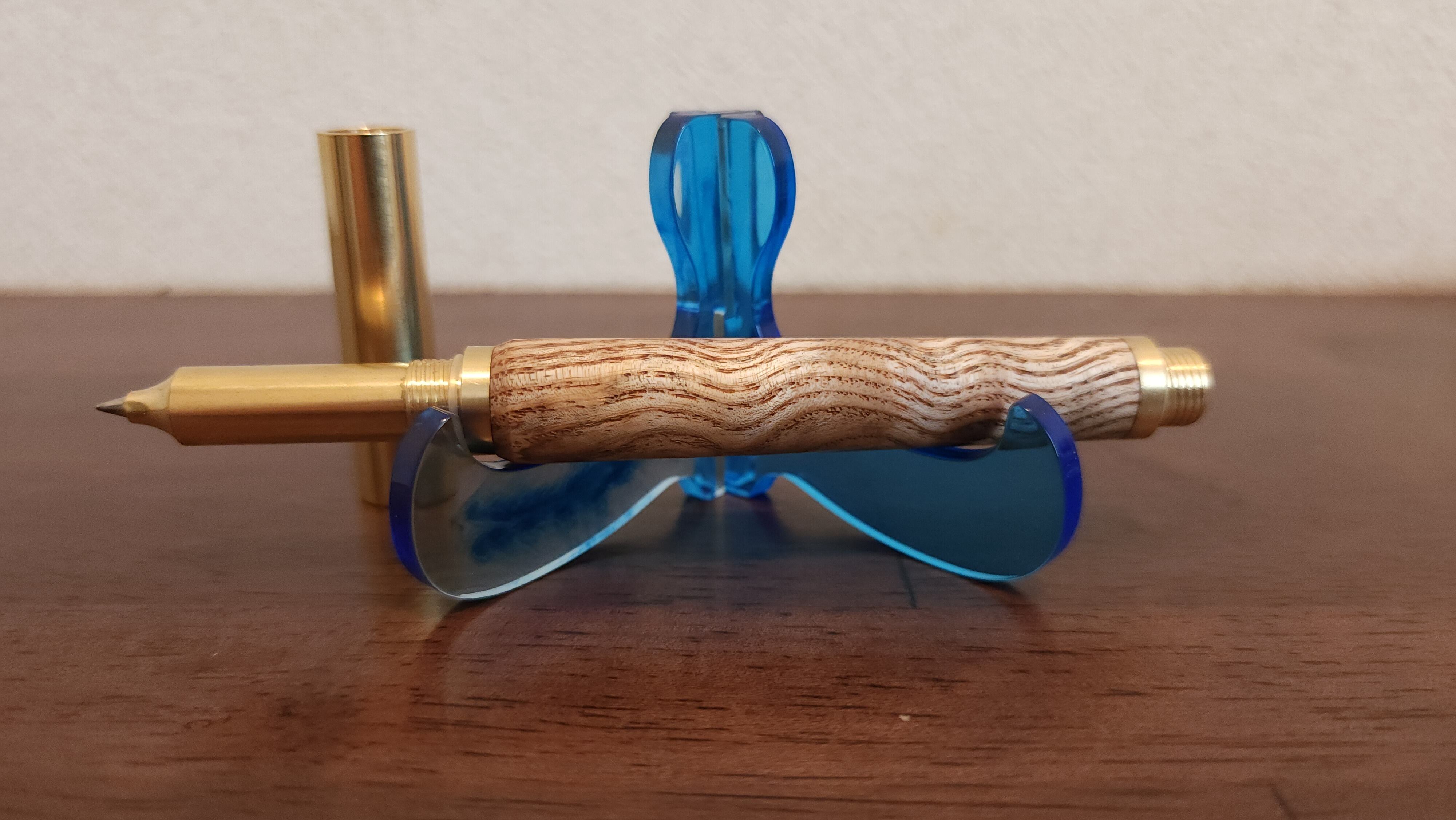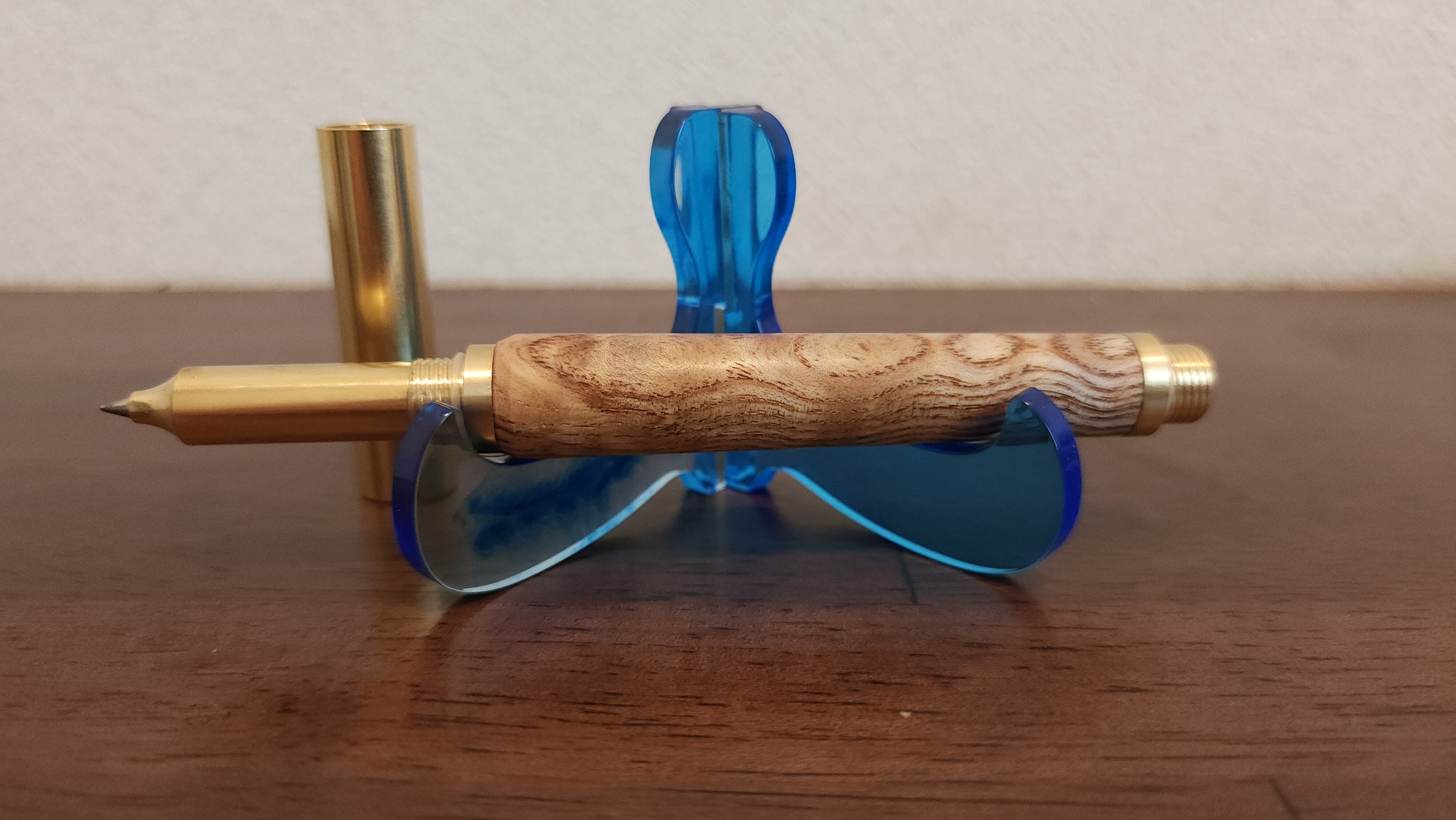 タモ玉杢のブラス製キャップ式ボールペンです。