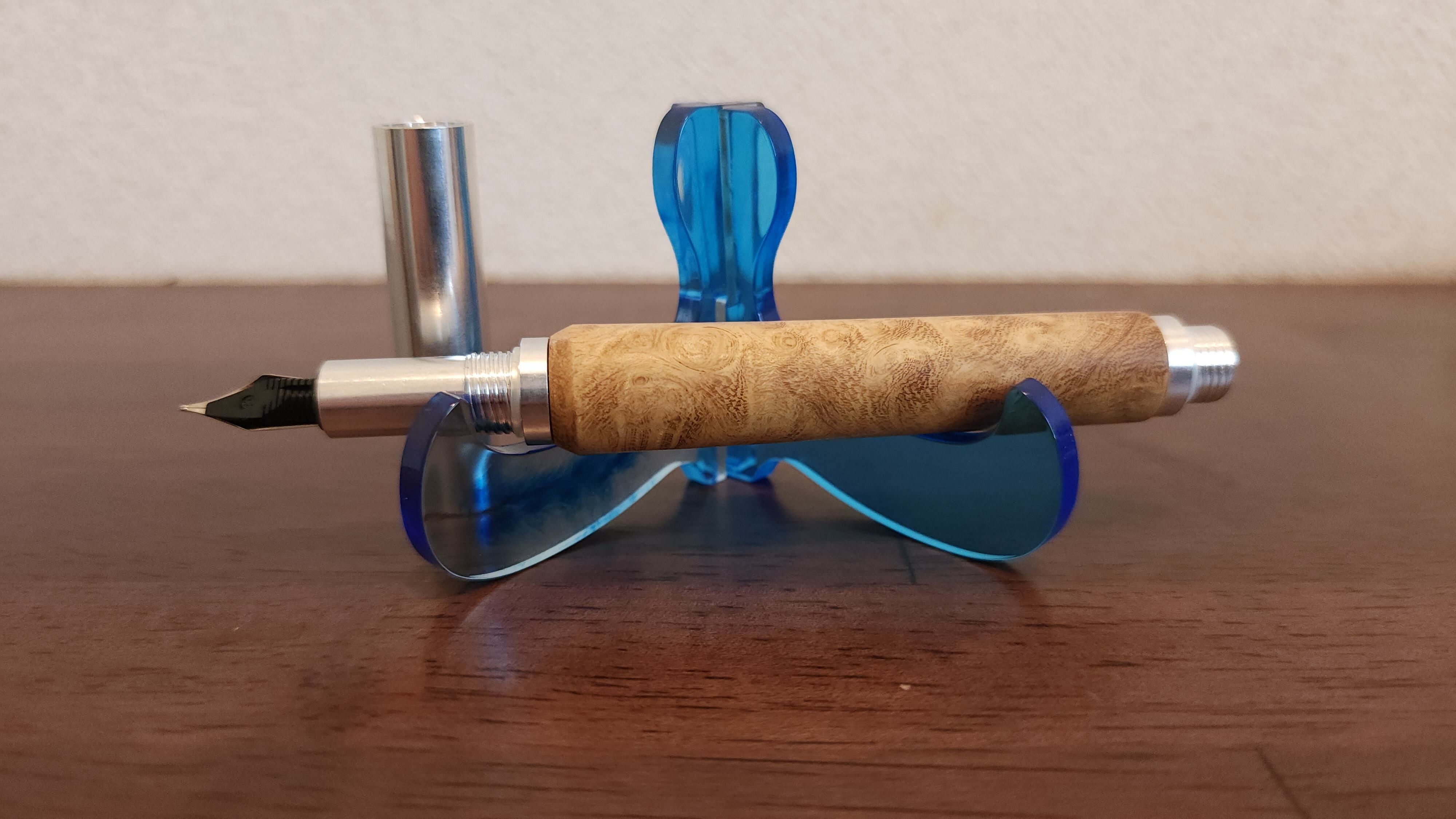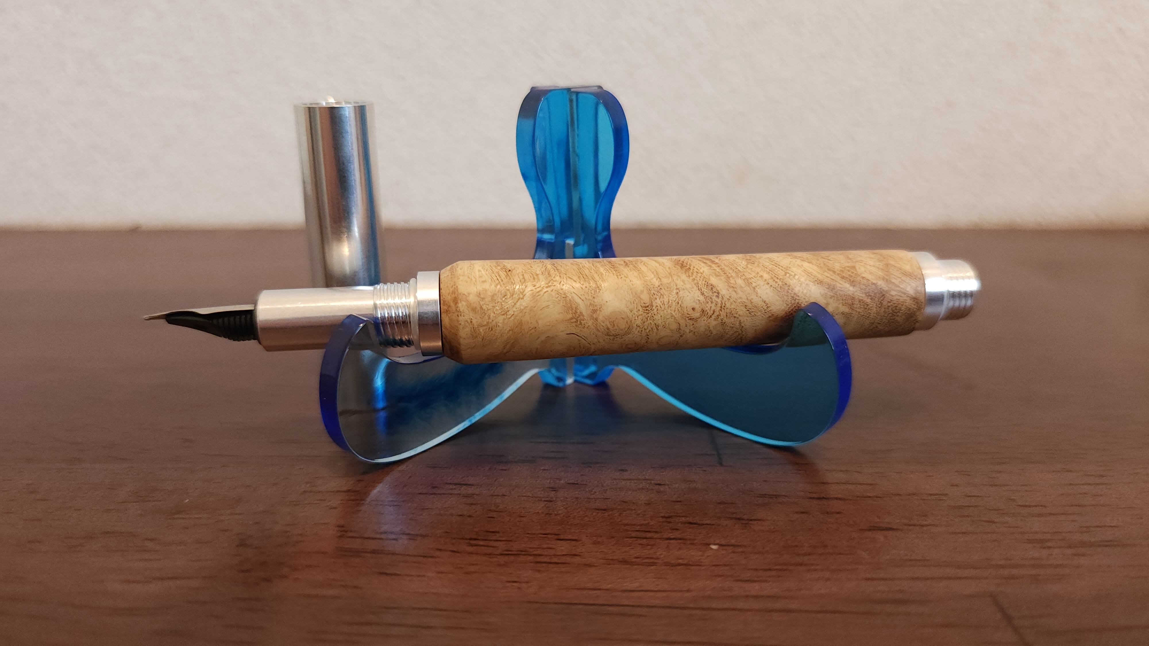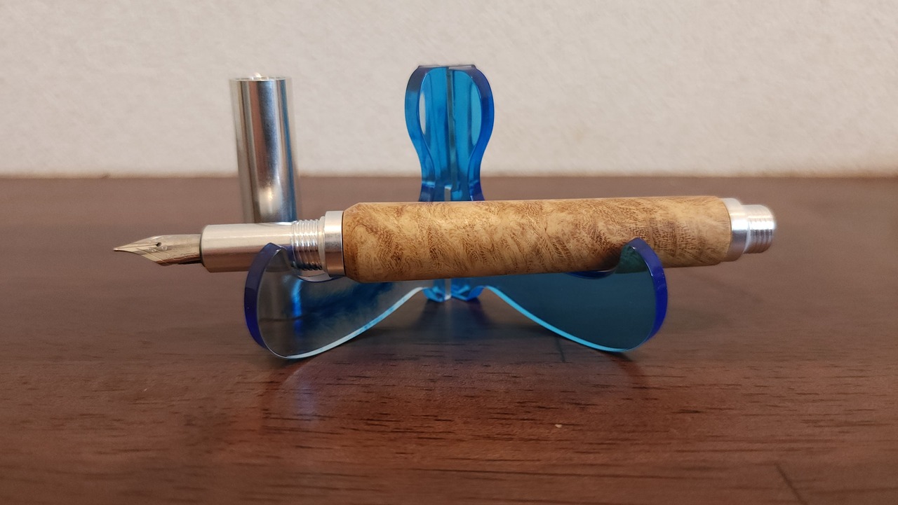アカシア瘤のアルミ製キャップ式万年筆です。