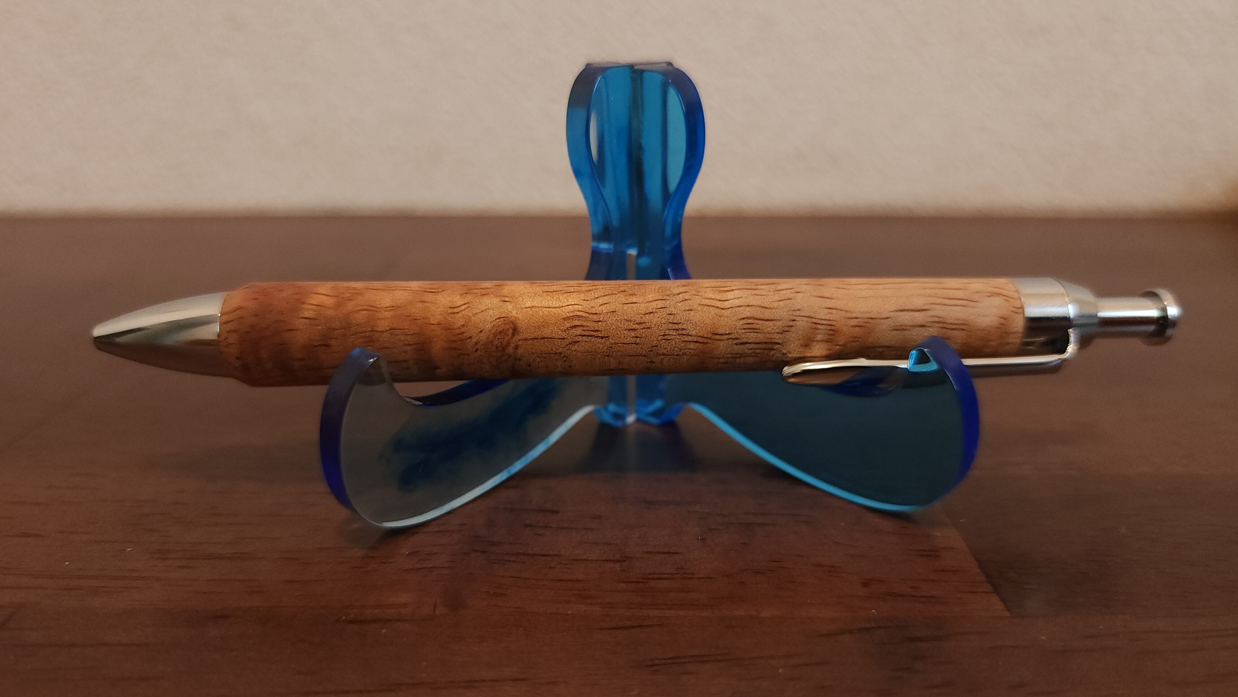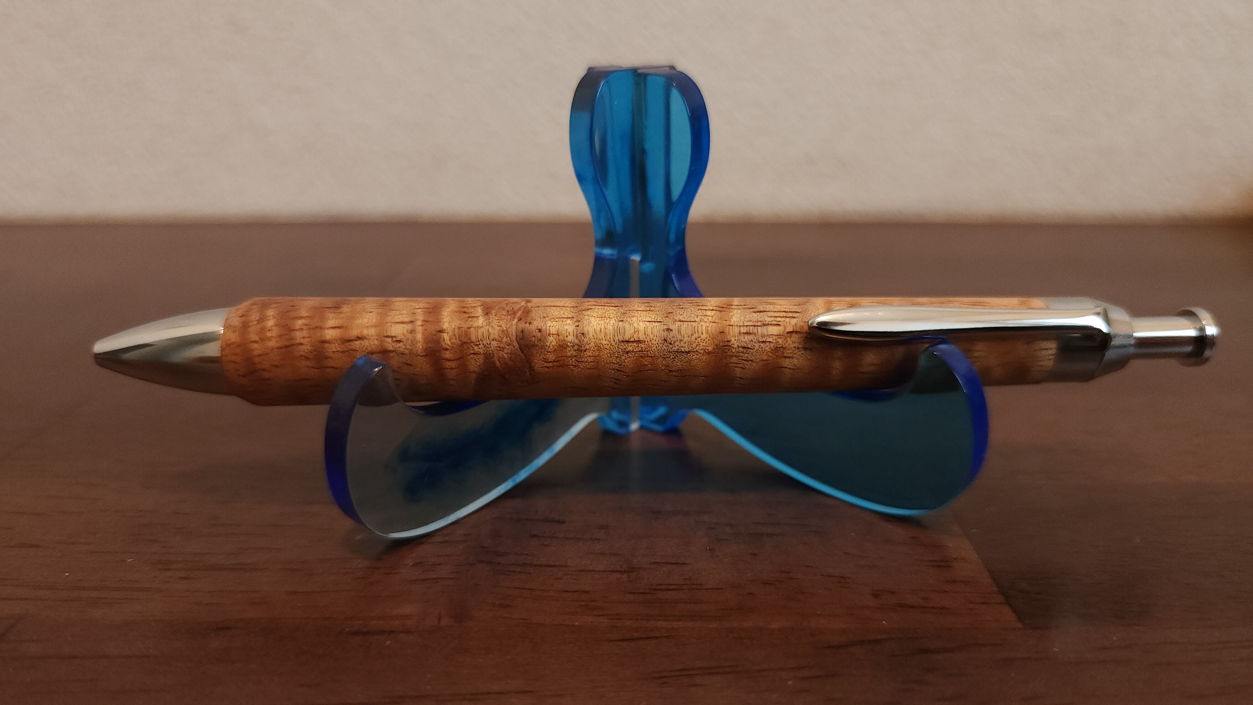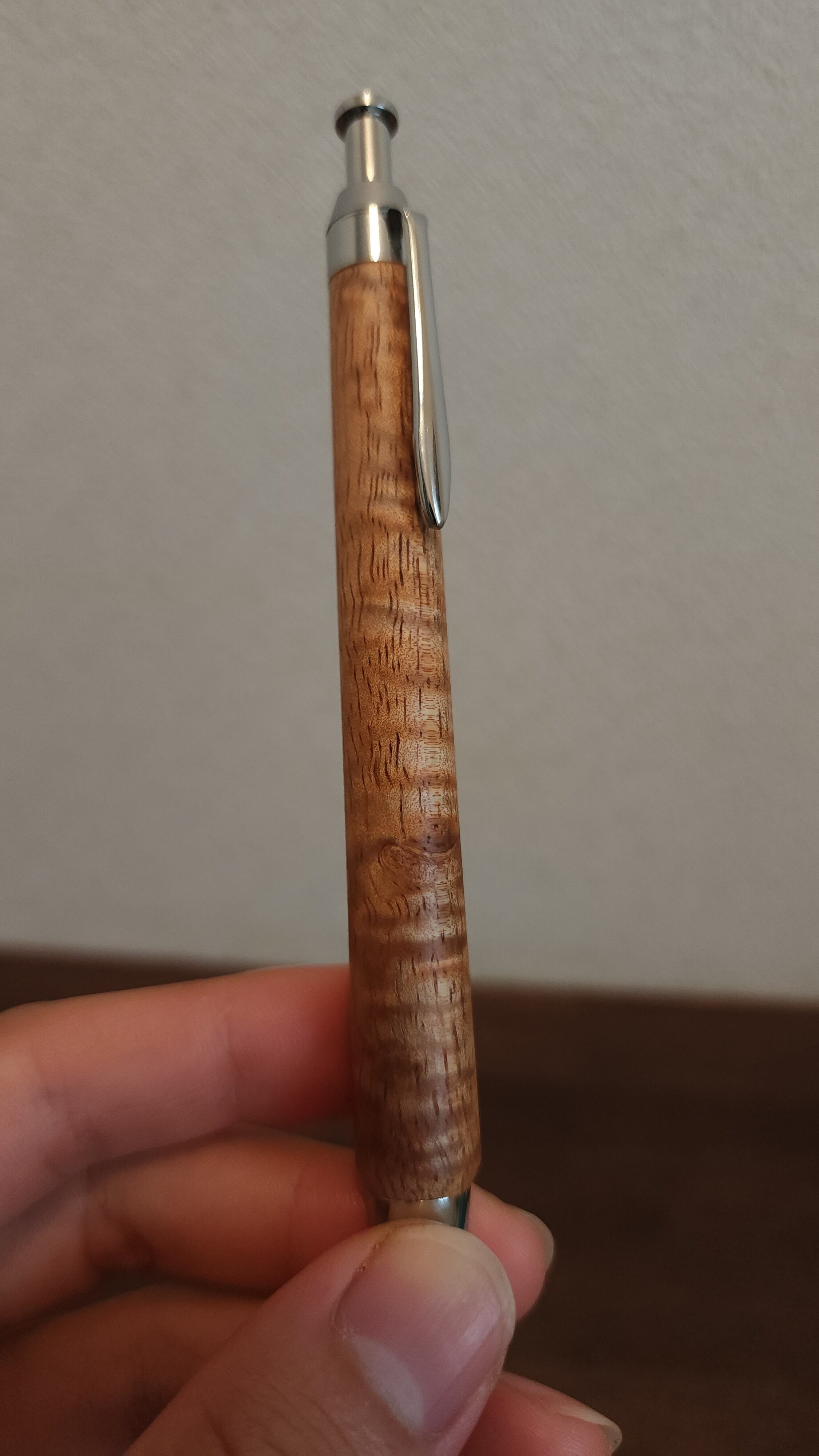幅の狭い縮杢もキレイですが、広いものはその分動きが大きく、いろんな角度で動かしてみるのが楽しいものが多いです。どちらも違った表情を楽しめるのがハワイアンコアの面白いところかなと思います。