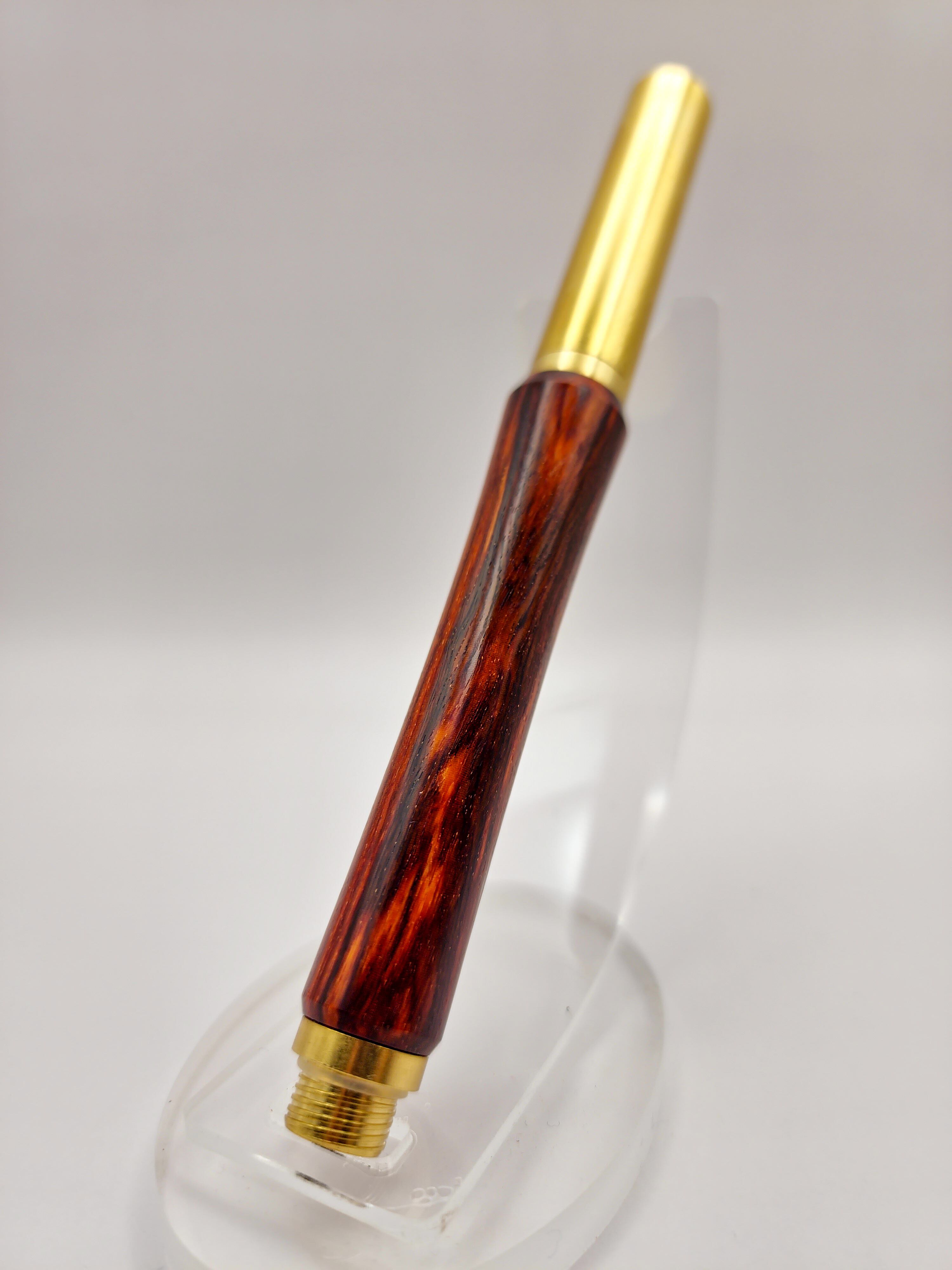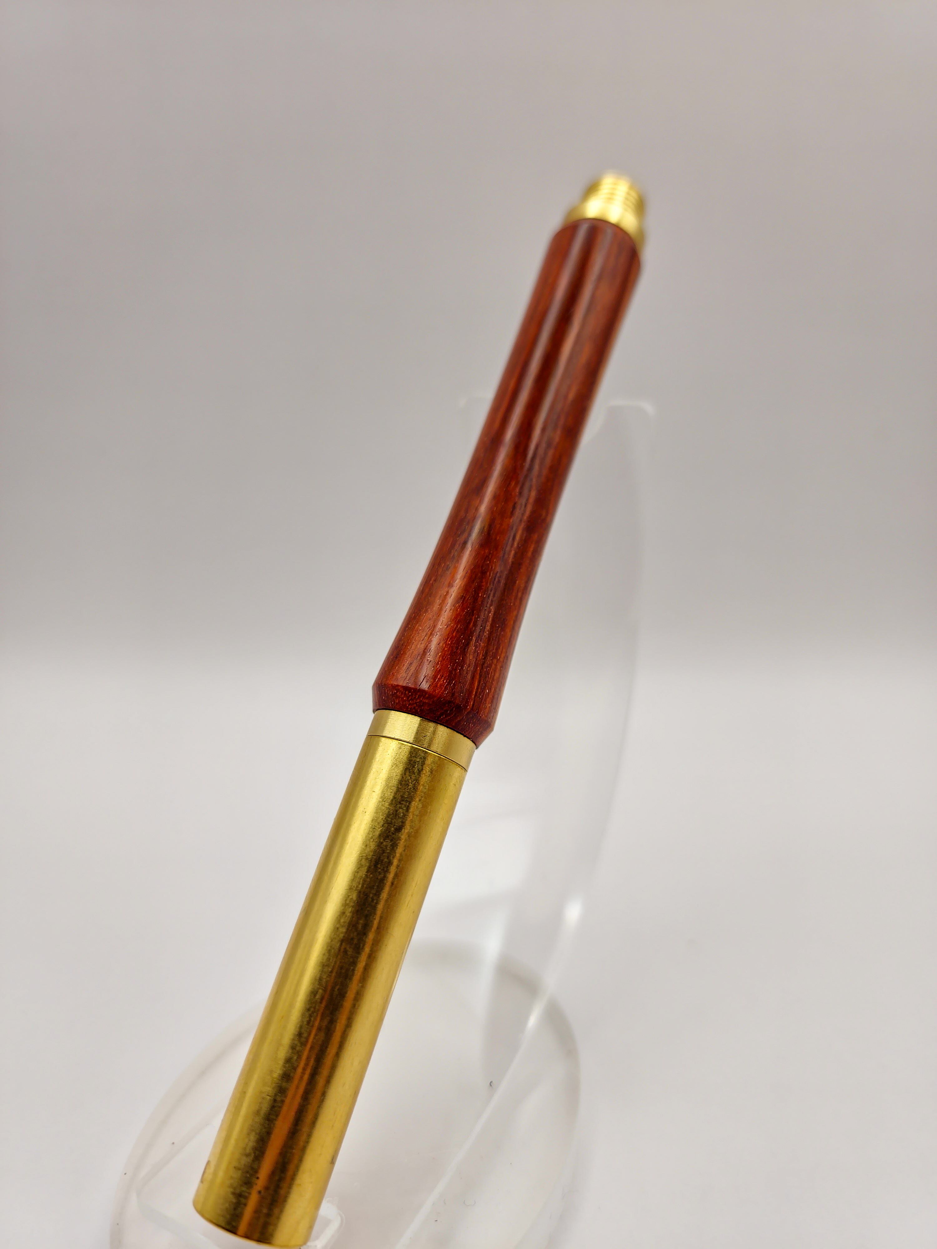 木目もさることながら、素晴らしいのはその色味です。赤黒く色付いた木材と鏡面仕上げが相まって高級感があります。ブラスがくすんできて艶が薄れてくると相性バッチリになる仕上げです。
