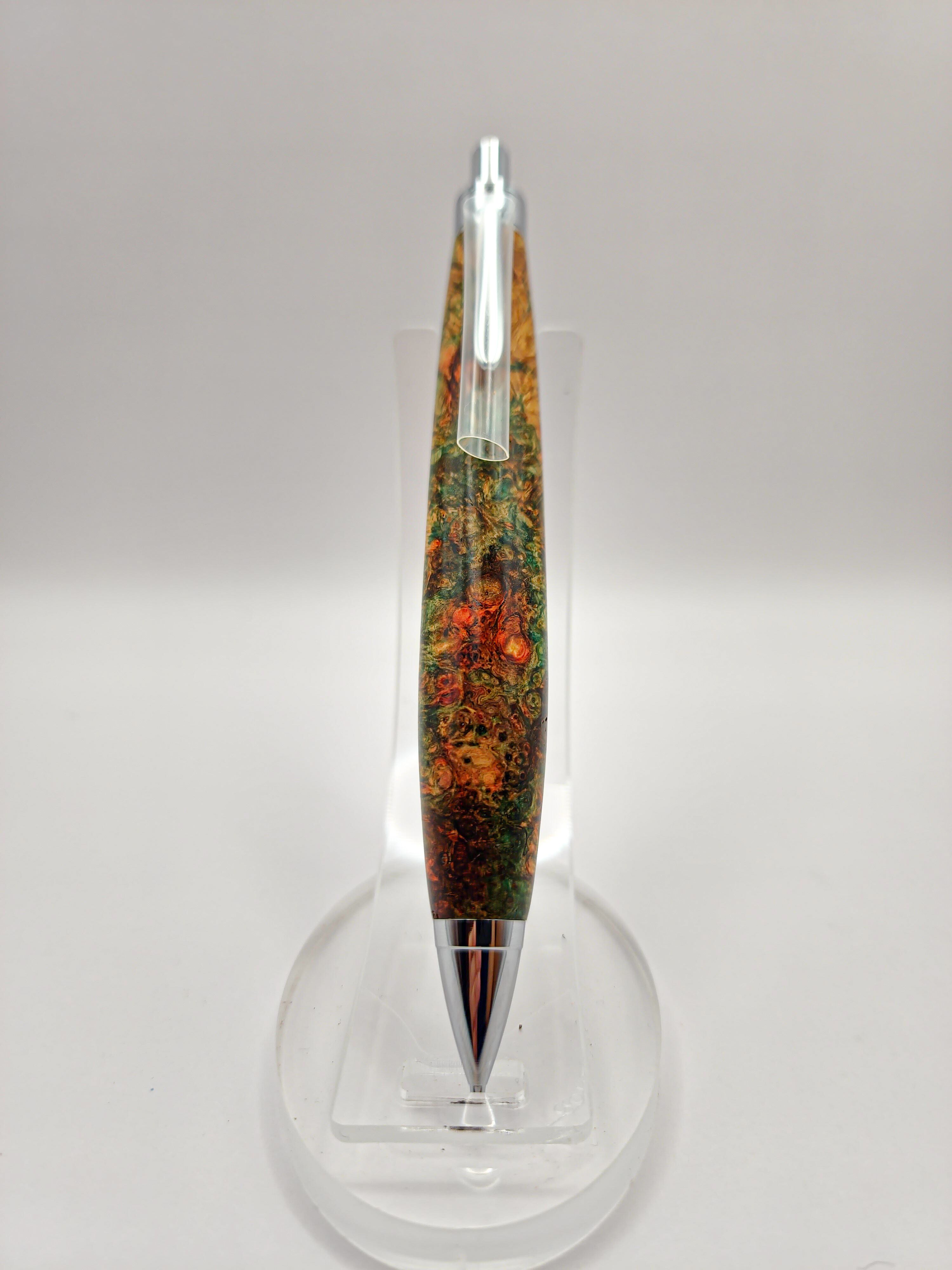 部分的にピンクや濃い紫など、入り混じっていてどこにいても目立つ1本です。入り皮入っていますがスタビ補強+接着剤処理で強度出してあります。入り皮を割れの心配少なく安心して使えるのも魅力です。