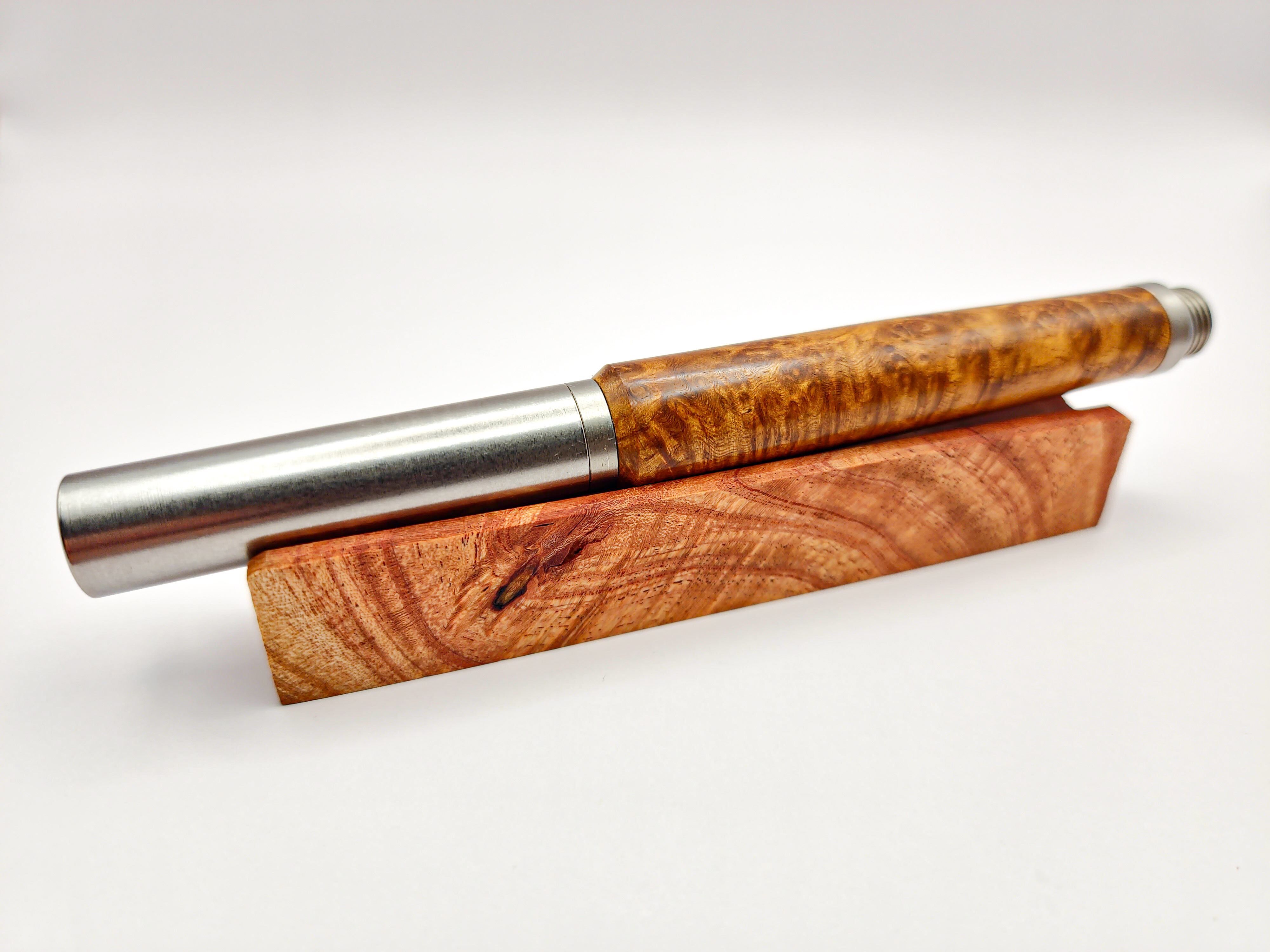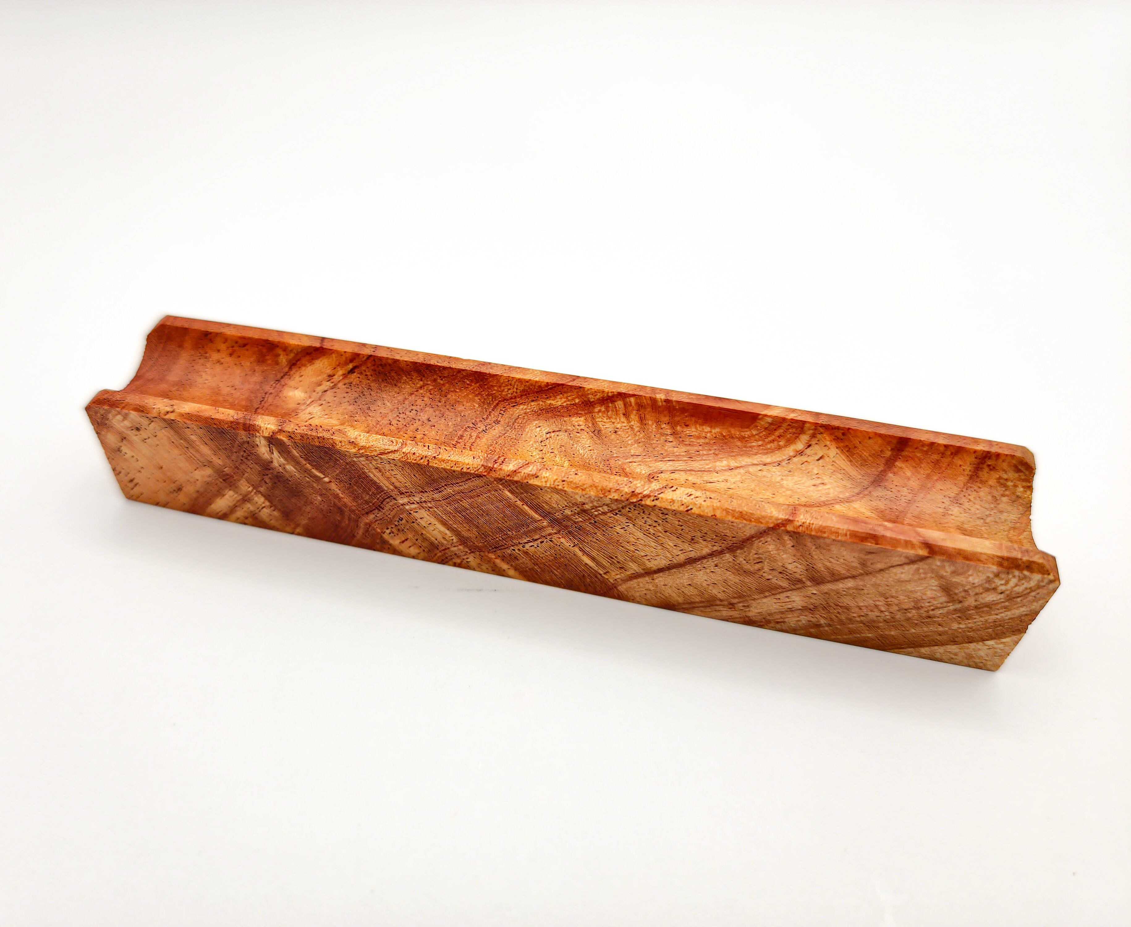 ニームと呼ばれるこの木。調べてみたところ海外では街路樹としてポピュラーなようです。日本でもセンダンはよく見ますが日本のセンダンよりも軽く色味も明るい印象です。香りはケヤキからクセを省いたようなセンダンらしい香り。ややピンキーな色味に瘤材らしい荒々しさが残る木目。他の樹種にも見劣りせず存在感があります。
