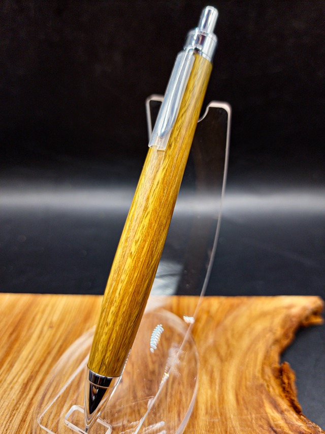 ※ココボロはKATO201/Φ11(0.5ミリシャープ)が付いております。 樹種:ココボロ ローズウッドのお仲間、ココボロ。 ココボロもいろんな種類があるようです。黒いココボロ、黒や黄色が入ったココボロ、オレンジのココボロ。比べるとちゃんと色味が違います。 今回は黒オレンジなしましまココボロです。 経験上ですがスパイダーウェブがよく出るのがこの個体です。 どこをどうやってとっても、どう削っても面白い柄が出る材で、ブックマッチでとった材でさえ丸棒になると顔が違います。 オールウェイズ違う表情が出る唯一無二な材です。 よろしくお願いいたします。